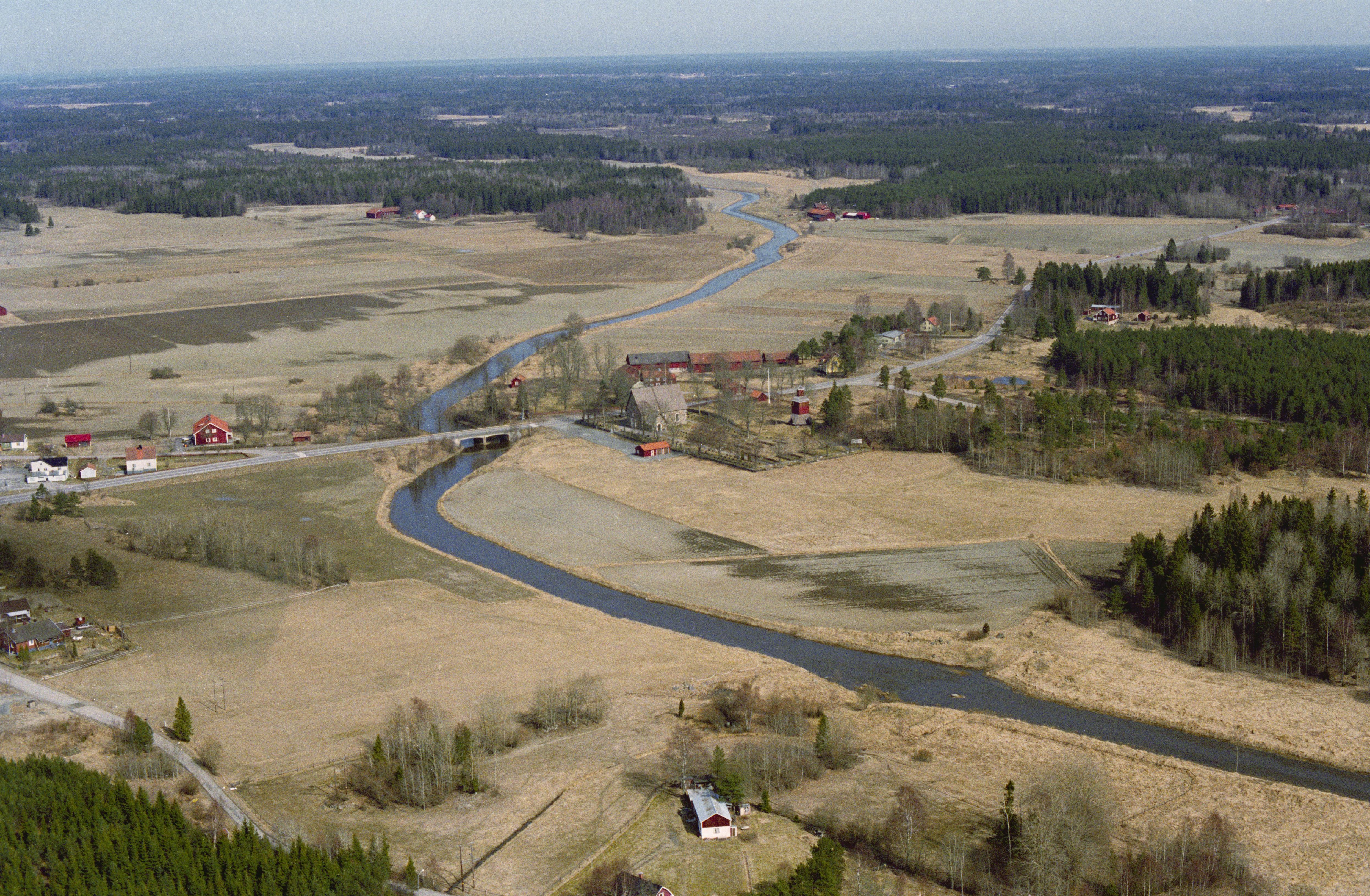 Beskrivning: Till höger om bildens mitt Hökhuvuds kyrka vid Olandsån. Bilden är tagen mot (väderstreck): NNO
