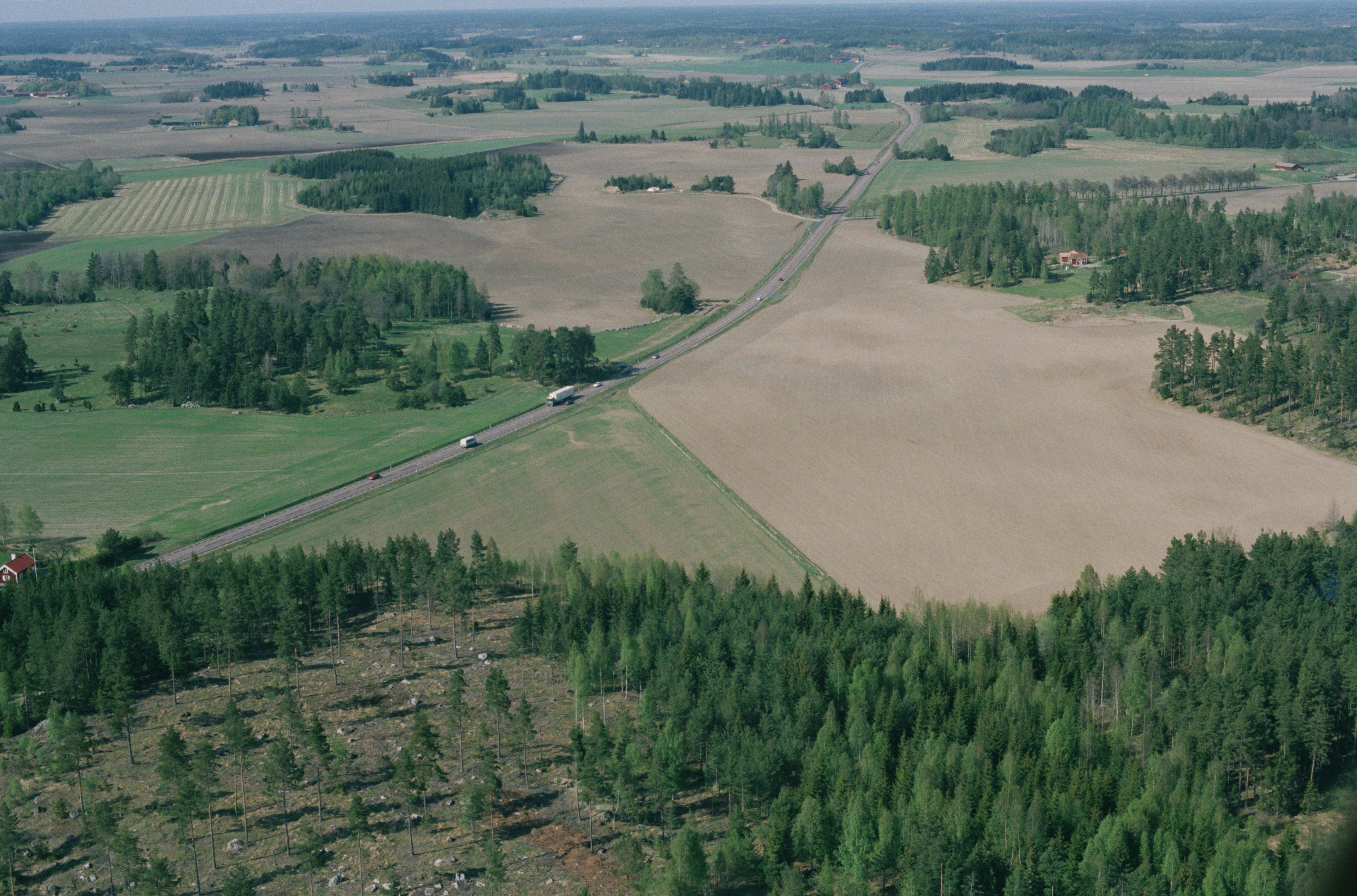 Beskrivning: Väg 55 vid Graneberg mot Djurby. Över bildens mitt vägmärke RAÄnr Litslena 141:1. Bilden är tagen mot (väderstreck): NNV