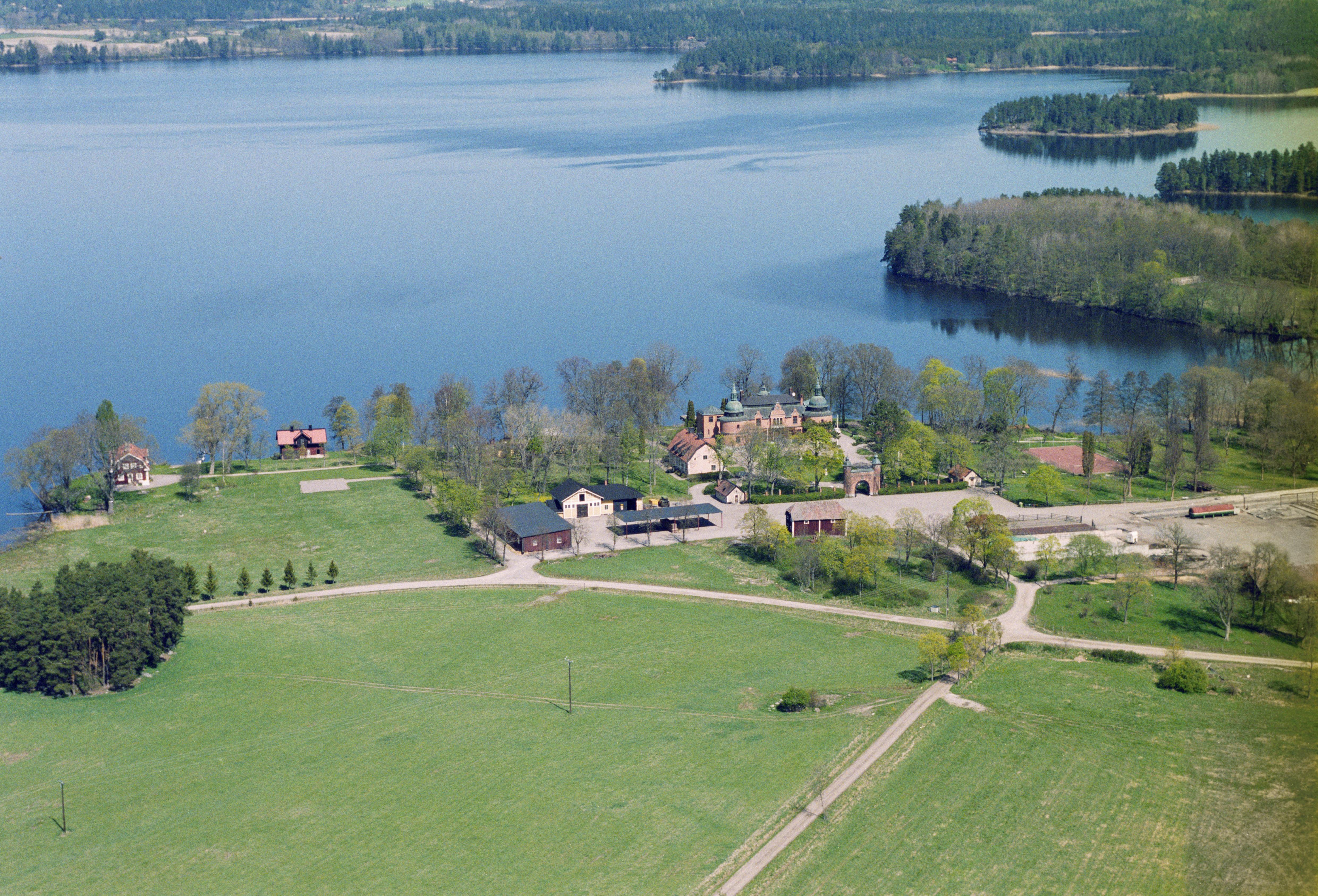 Beskrivning: Rockelsta slott / herrgård (skrivs även Rockelstad) RAÄnr Helgesta 119:1, vid sjön Båven. Bilden är tagen mot (väderstreck): NO