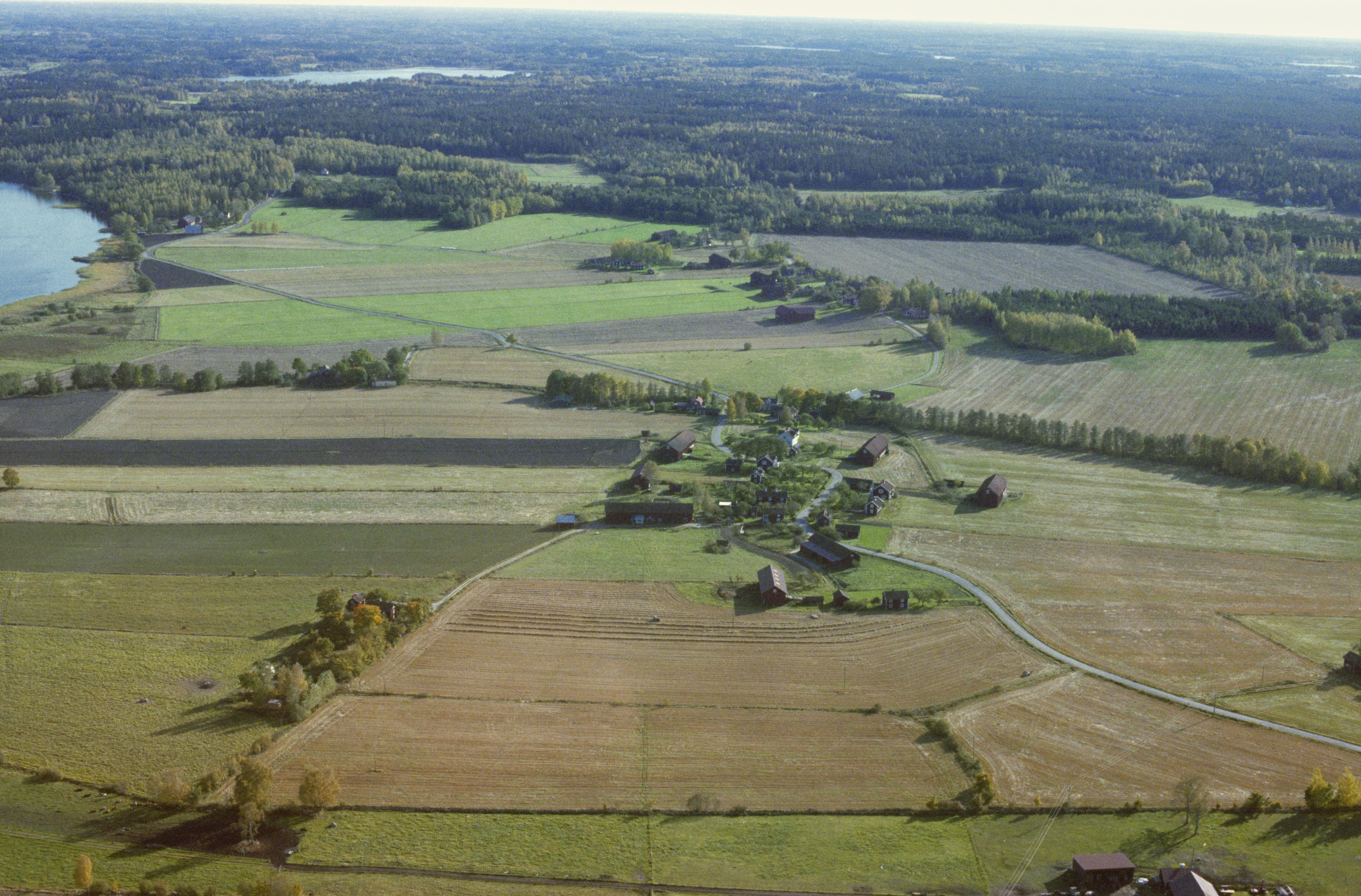 Beskrivning: Hulla by vid sjön Öljaren. Uppe till höger fyndplats (stenyxor) RAÄnr Österåker 3:1. Gärsån vid bildens mitt. Bilden är tagen mot (väderstreck): SSO