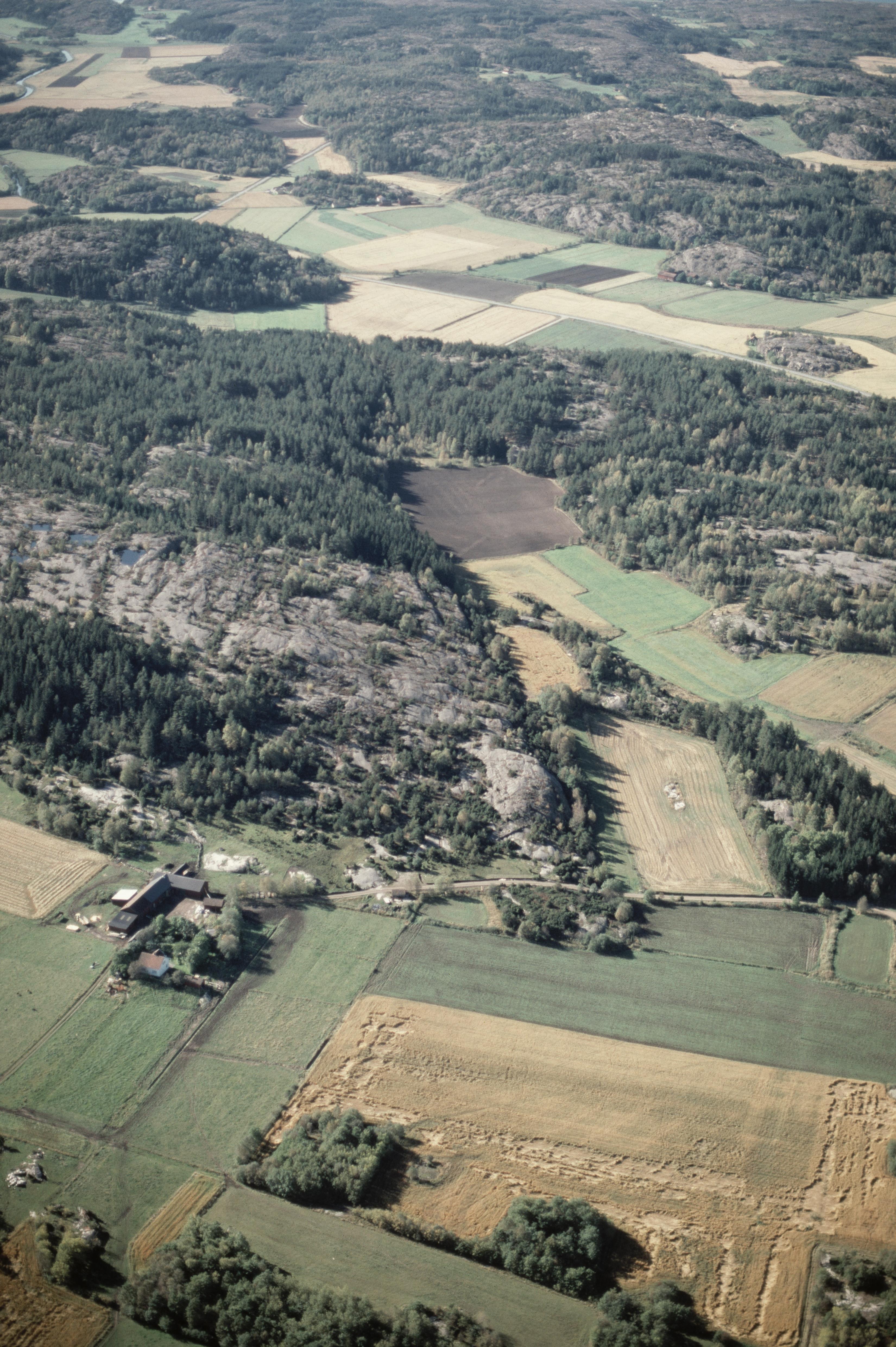 Beskrivning: Tanumsslätten. Hällristningsområde i fornlämningsrik dalgångsbygd. Hällristningar i Kalleby (i Kville och Tanums socknar). Hällristningar RAÄnr Tanum 422:1, 507:1 m.fl, Bilden är tagen mot (väderstreck): SSV