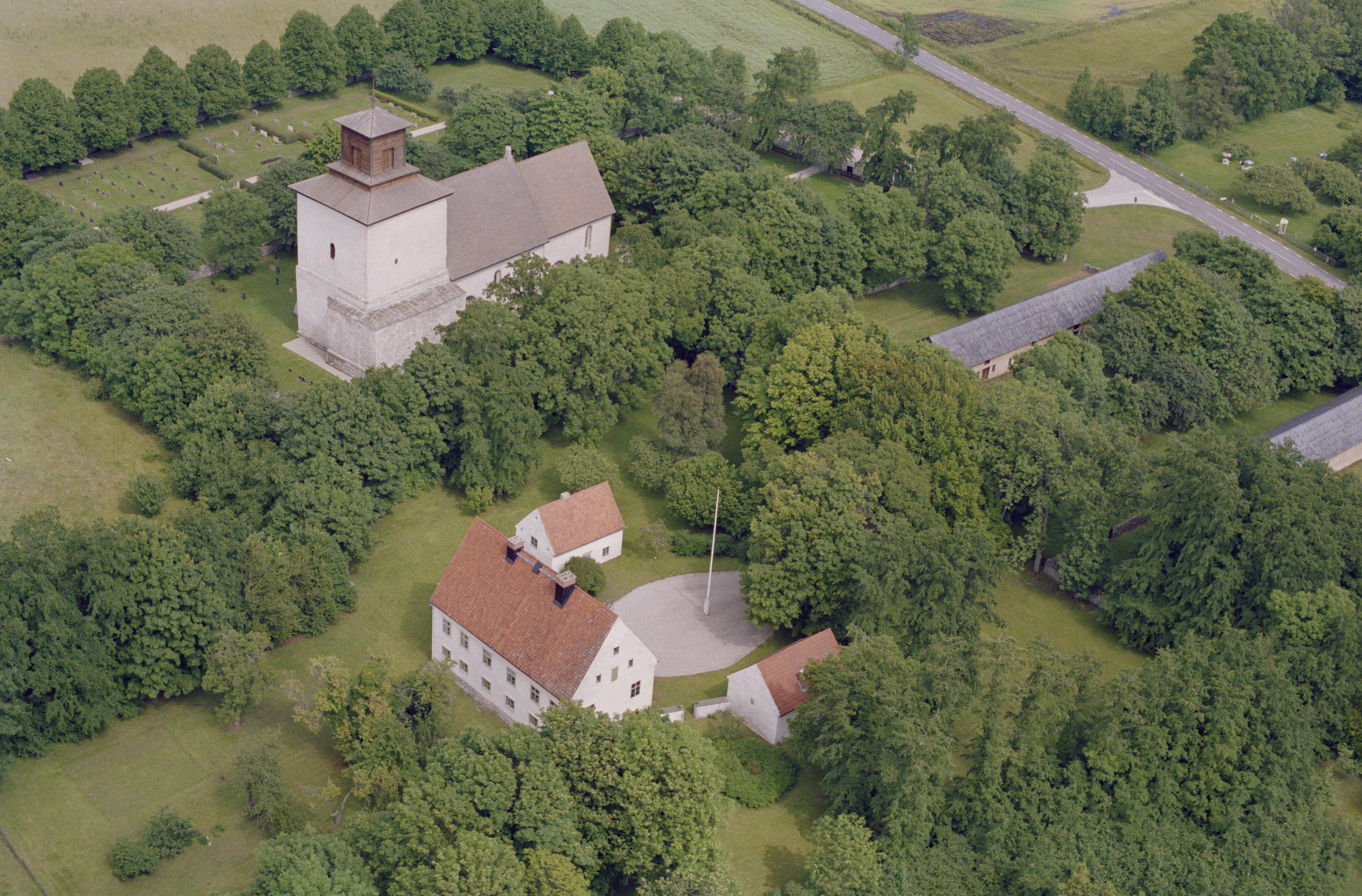 Beskrivning: Vamlingbo kyrka och prästgård i bytomt RAÄnr Vamlingbo 64:1. Bilden är tagen mot (väderstreck): NNO