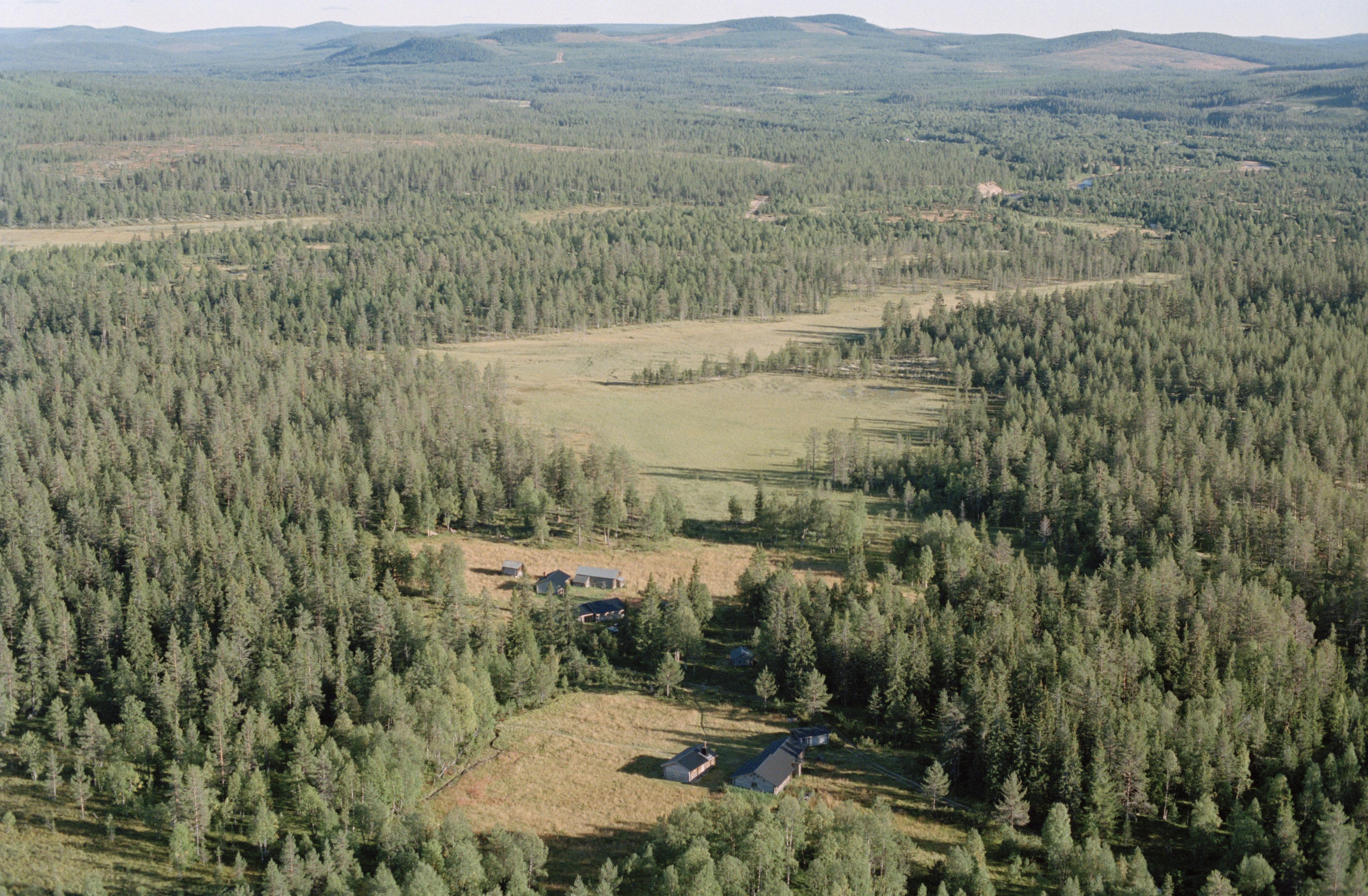 Beskrivning: Under bildens mitt fäbodområdet Lill-Härjåvallen, norr om fäbodområdet Lövnäsvallen i Stor-Härjåns dalgång. Erlandsmyran vid och över bildens mitt. Bilden är tagen mot (väderstreck): SO