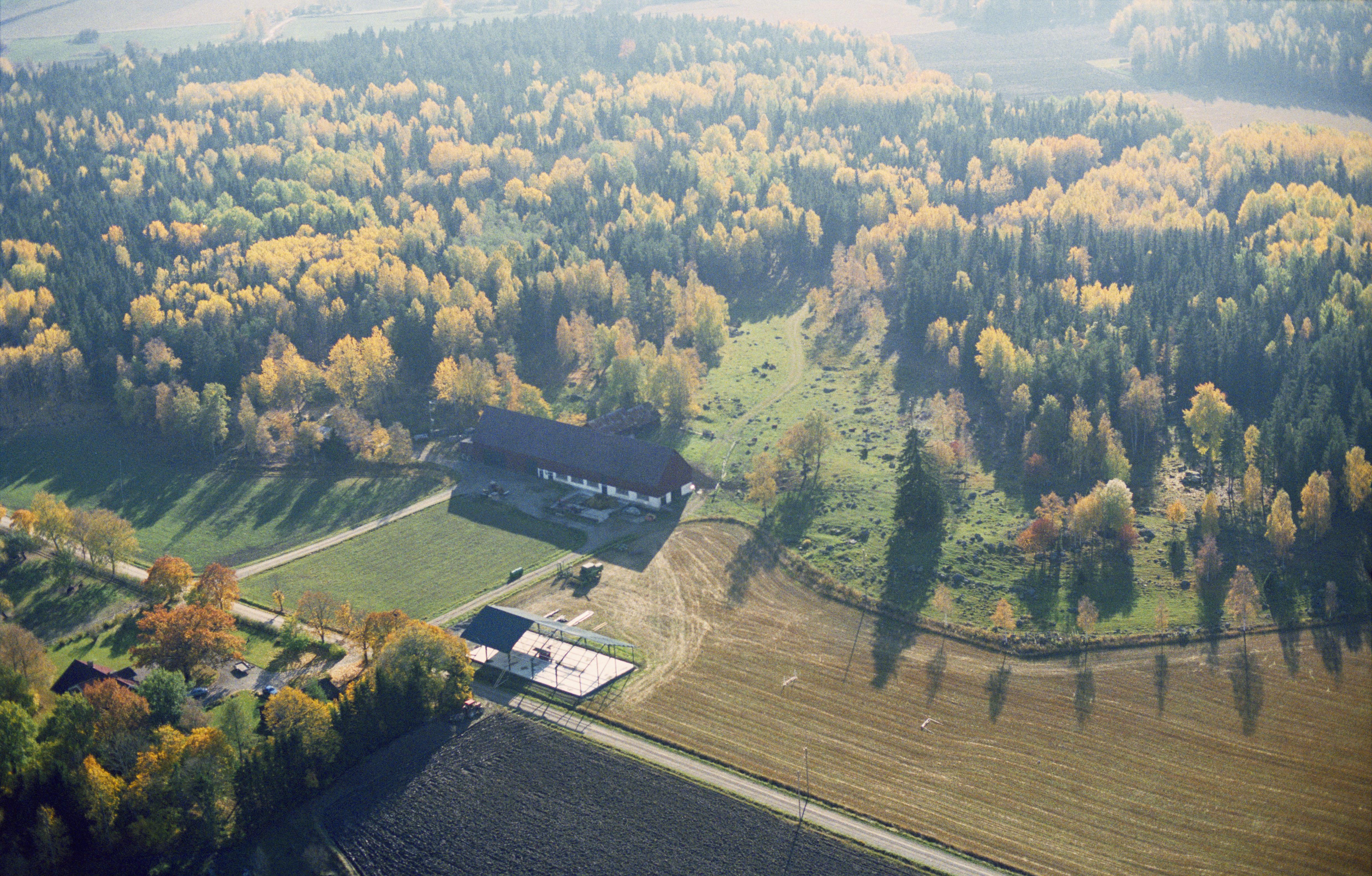 Beskrivning: Broby kvarn vid Sagån. Till vänster över bildens mitt hägnad RAÄnr Björksta 326:1 och till höger stensättningar och hägnad Björksta 327:1-2. Bilden är tagen mot (väderstreck): S
