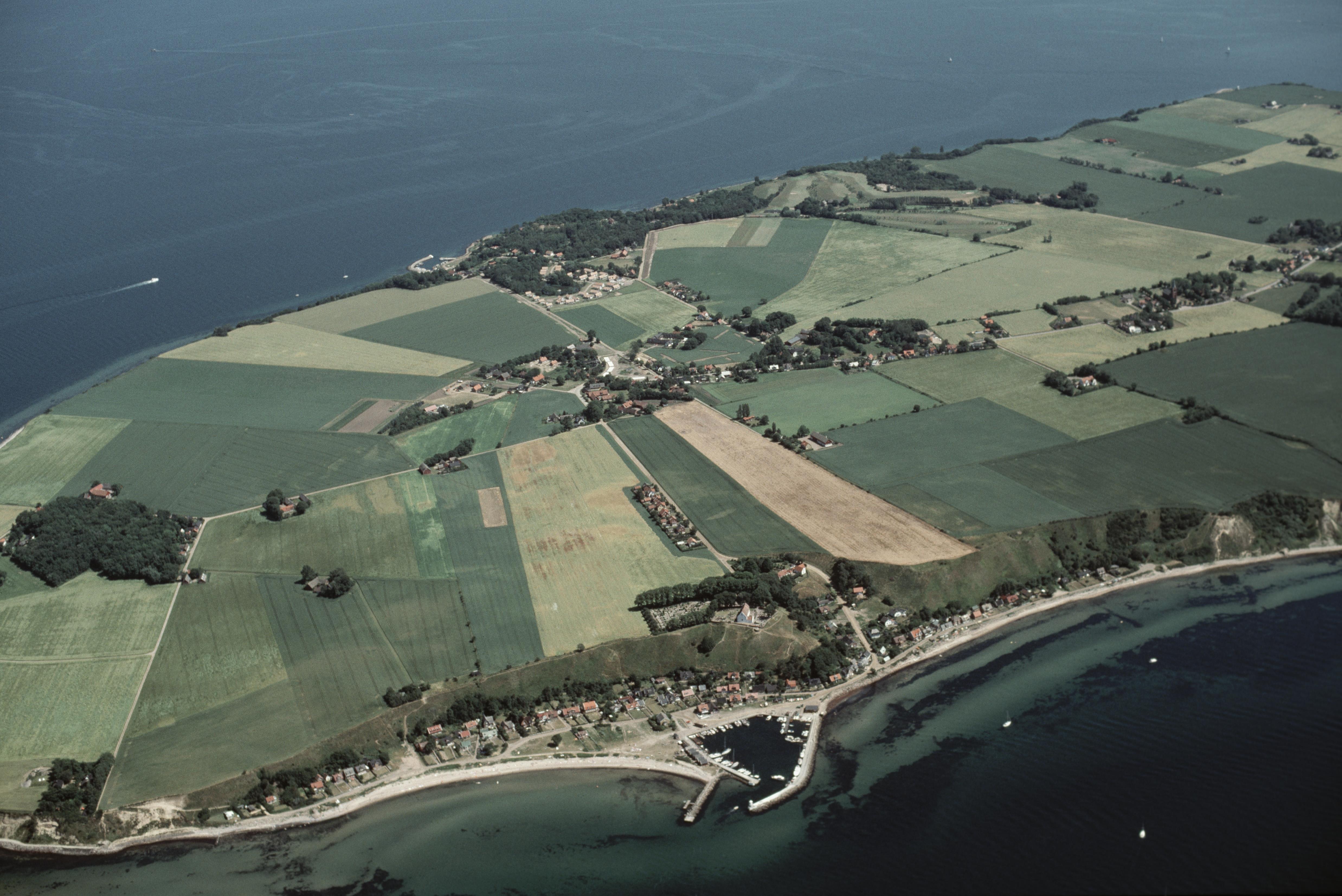 Beskrivning: I bildens nedre del fiskeläget Kyrkbacken med Sankt Ibbs gamla kyrka. Vid bildens mitt Tuna by. Bilden är tagen mot (väderstreck): Ö