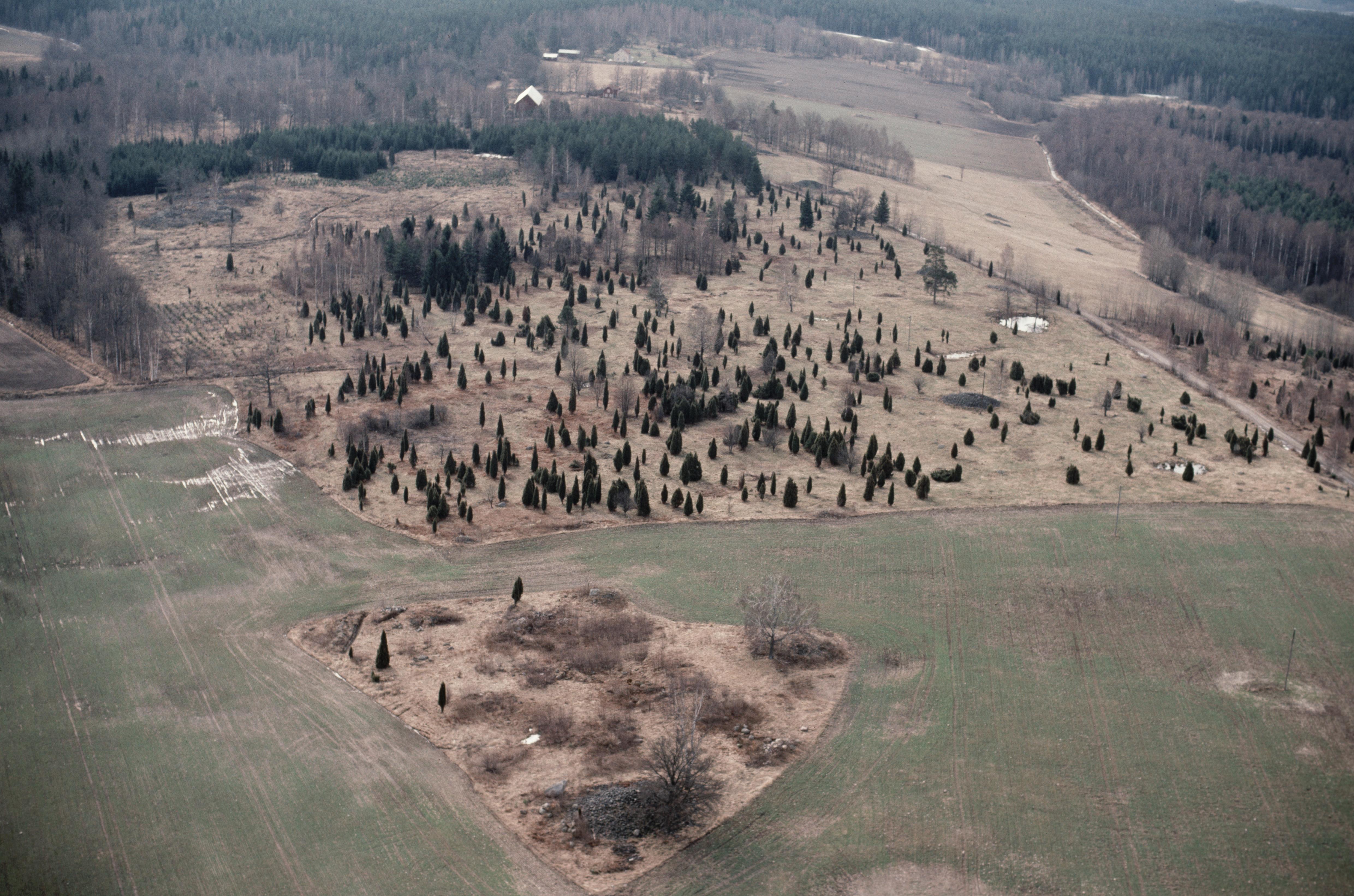 Beskrivning: Fornlämningsområde med hällristingar och gravrösen, bl.a. hällristning RAÄnr Gamleby 181:1 och gravfält Gamleby 178:1. Bilden är tagen mot (väderstreck): SO