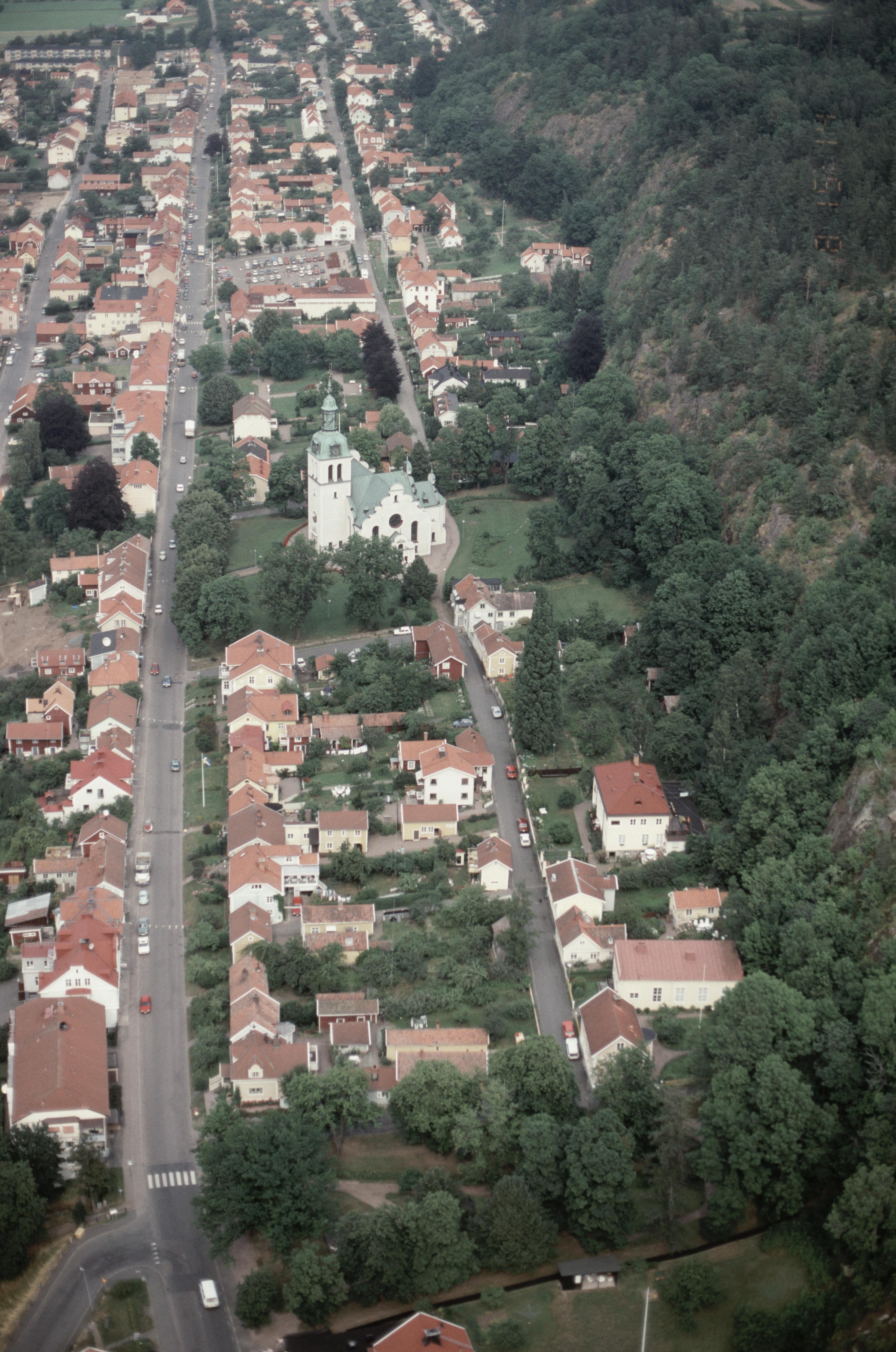 Beskrivning: Gränna kyrka och tätort. Bilden är tagen mot (väderstreck): NNO