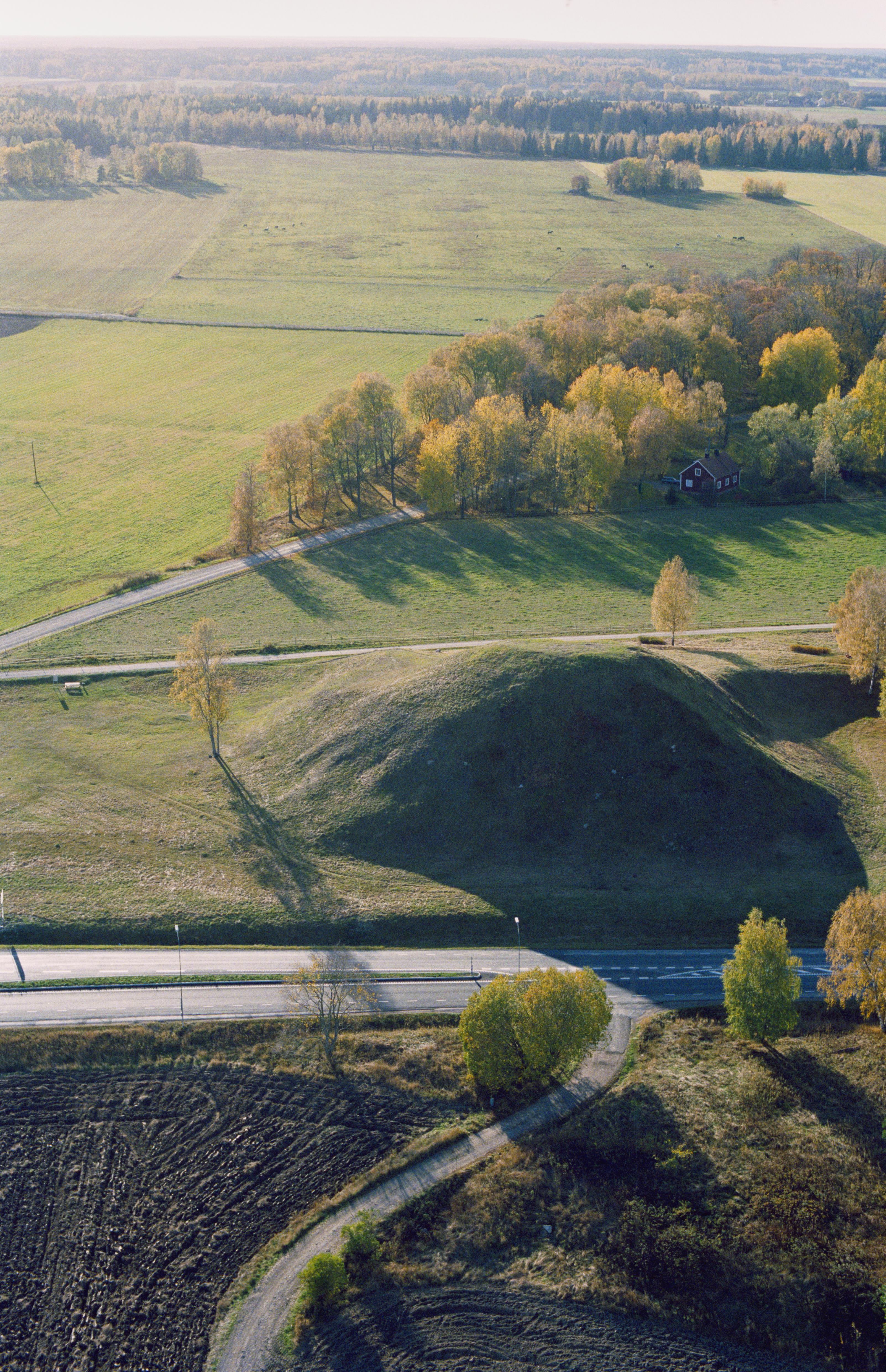 Beskrivning: Gravhögen Ströbohög RAÄnr Köping 56:1 i nordvästra utkanten av staden Köping. Bilden är tagen mot (väderstreck): VSV