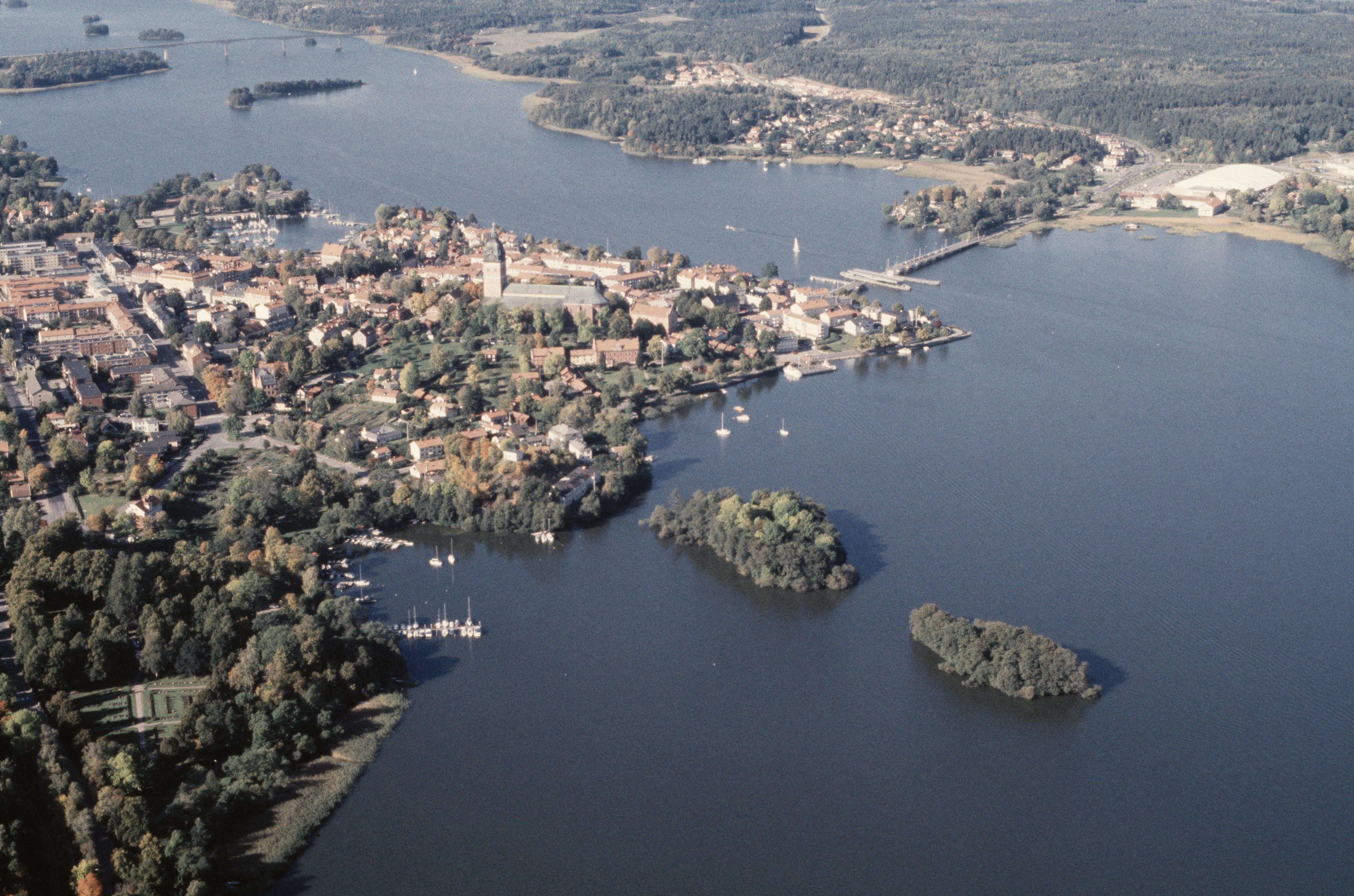 Beskrivning: Anmärkning (övrig): Riksintresse-nr/namn: D18 - Strängnäs. Socken: Strängnäs. Motivering: Lärdoms- och stiftsstad med unikt sammansatt planmönster där utvecklingen kan följas från medeltid över 1600-talets reglering till utvidgningar kring sekelskiftet 1900, då också funktionen av regementsstad tillkom. - Uttryck för riksintresset: Den dominerande domkyrkan och övrig, i huvudsak medeltida bebyggelse förknippad med stiftsstaden. Gatunätet som till stor del bevarar en oregelbunden medeltida karaktär delvis reglerat på 1640-talet och efter 1871-års brand. Rutnätssystem i olika riktningar, gator i sneda vinklar och en stjärnplats. Trähusbebyggelse från 1600- 1700- och 1800-talen, bestående av såväl små stugor som (…) Texten i detta fält har förkortats vid migrering till e-arkivet. Se filbilagan extra.xml för fullständig information under note_archivist. Beskrivning: Strängnäs stad. Strängnäs domkyrka vid bildens mitt. Bilden är tagen mot (väderstreck): NV Fotosyfte: Flygbildsdokumentation