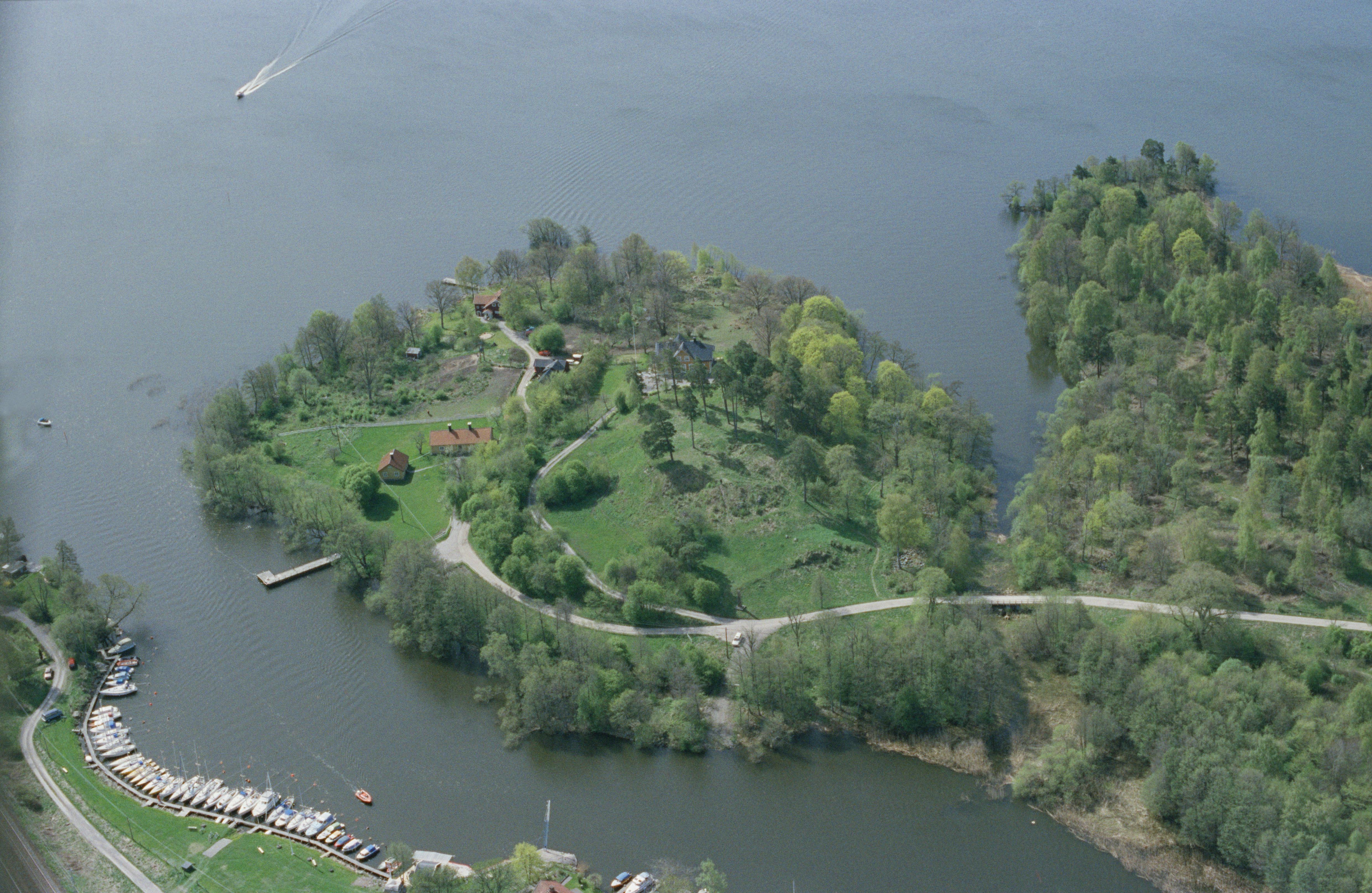 Beskrivning: Görväln i Mälaren vid gränsen mellan socknen Järfälla och Kungsängen. Vid bildens mitt Stäketsholmen med borgruin Sankt Eriks borg RAÄnr Kungsängen 73:1. Stäket i Järfälla socken nere till vänster. Bilden är tagen mot (väderstreck): SV