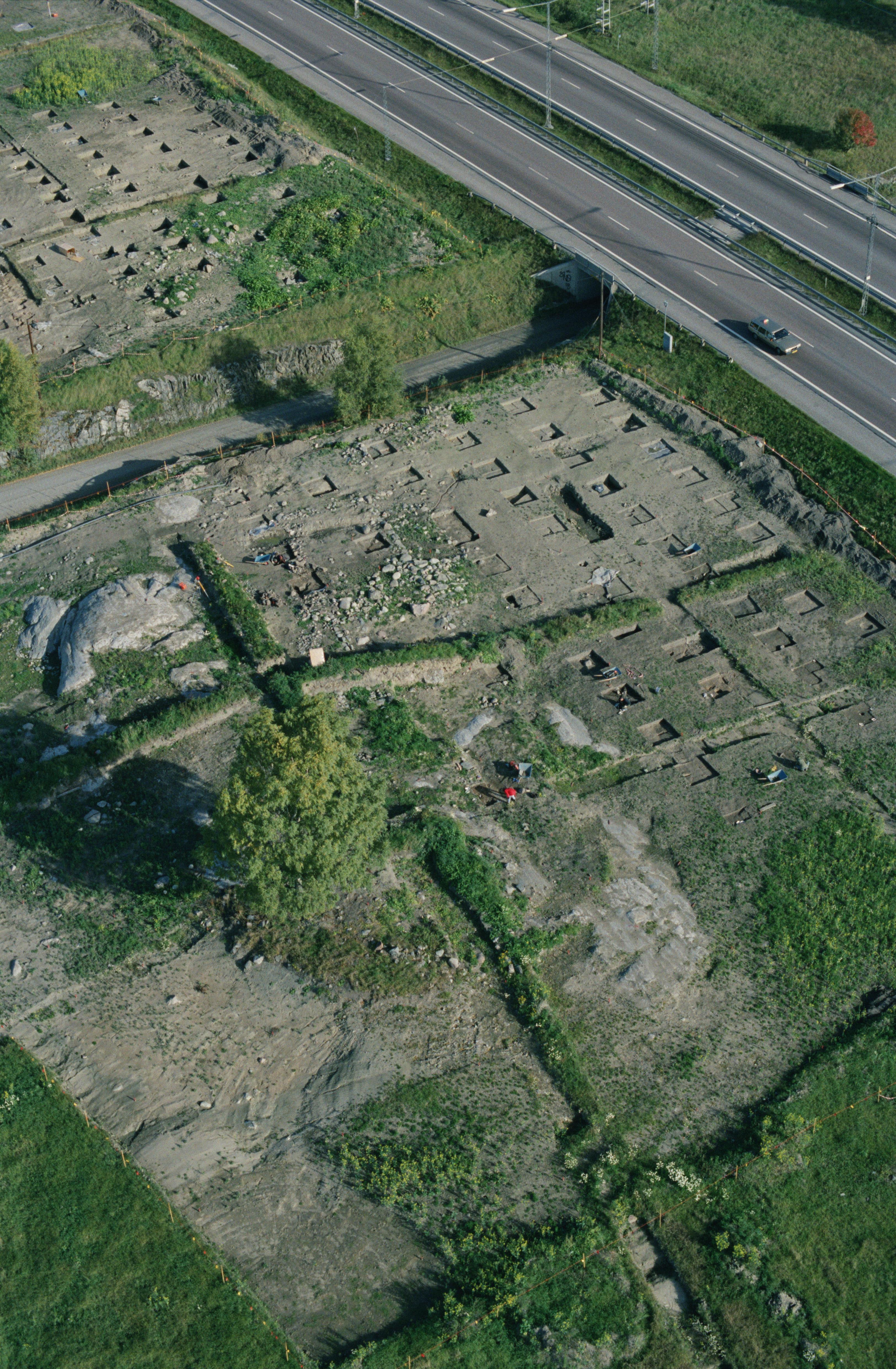 Beskrivning: Anmärkning (övrig): Riksintresse-nr/namn: AB71b - Skålhamravägen. Socken: delen i Skånela och Norrsunda socknar. Motivering: Centralbygd, herrgårdslandskap och vägsystem, med rötter i en forntida stormannabygd med anknytning till kungamakten. Landskapet speglar en rik och komplex järnåldersbygd och dess fortsatta utveckling genom den tidiga medeltidens sockenbildning och 1600-talets säterier, med kontinuitet fram i dagens agrarlandskap. (Fornlämningsmiljö). - Uttryck för riksintresset: Rika järnålderslämningar i form av bl.a. äldre vägsträckningar, många runristningar, flera i urprungligt läge, stensträngssystem och gravfält i anslutning till byar och gårdar. Uttryck för ett kungligt inflytande, som Nordians h(…) Texten i detta fält har förkortats vid migrering till e-arkivet. Se filbilagan extra.xml för fullständig information under note_archivist. Beskrivning: Östra delen av Rosersberg, väster om Ström. Arkeologisk undersökning av gravfält Norrsunda 52:1 innan bygge av järnväg (Arlandabanan). Bilden är tagen mot (väderstreck): NO Fotosyfte: Flygbildsdokumentation