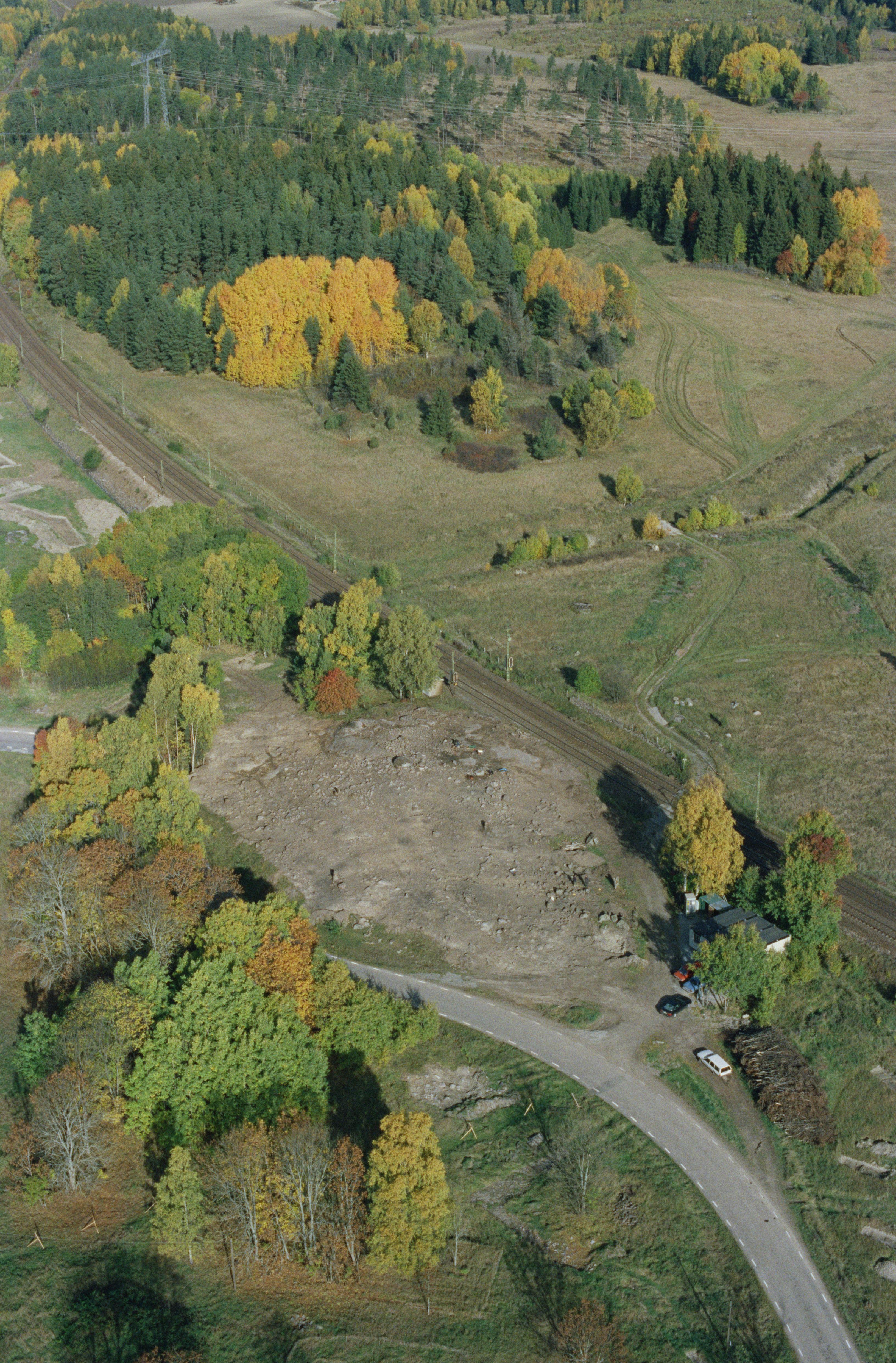 Beskrivning: Arkeologisk undersökning vid Forsby i Forsbyåns dalgång. Husgrund RAÄnr Knivsta 176:1-2 och stensättning Knivsta 189:1. I bildens övre del gravfält RAÄnr Knivsta 126:1 med hällristningar Knivsta 269:1-9 m.fl. vid Grindstugan. Bilden är tagen mot (väderstreck): NNO