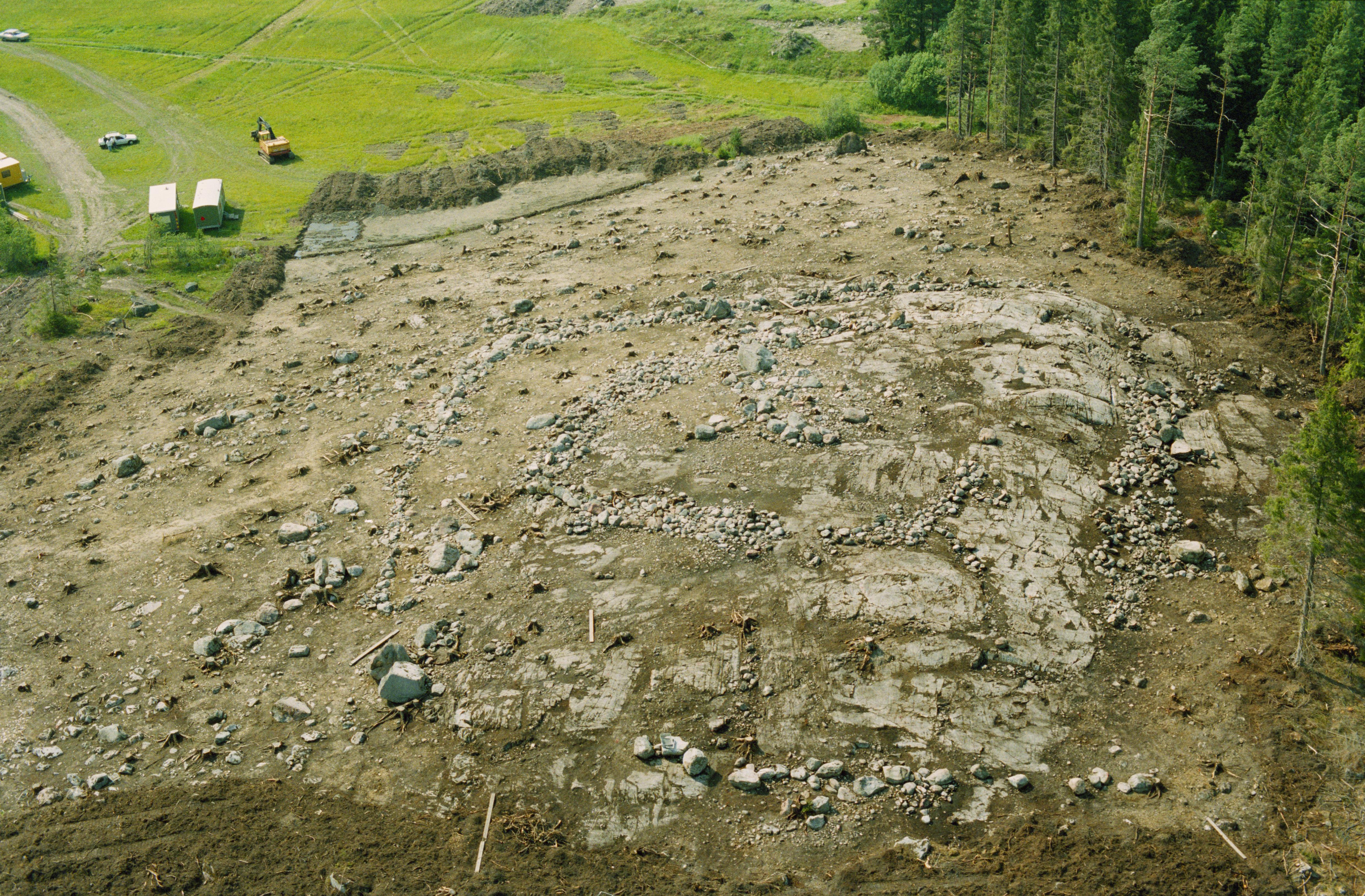 Beskrivning: Arkeologisk undersökning innan bygge av järnväg (Arlandabanan) i Rickebyåns dalgång i områden söder om Svartsjön. Fornborg Odensala 235:1, boplats Odensala 489:1, m.fl. Bilden är tagen mot (väderstreck): S