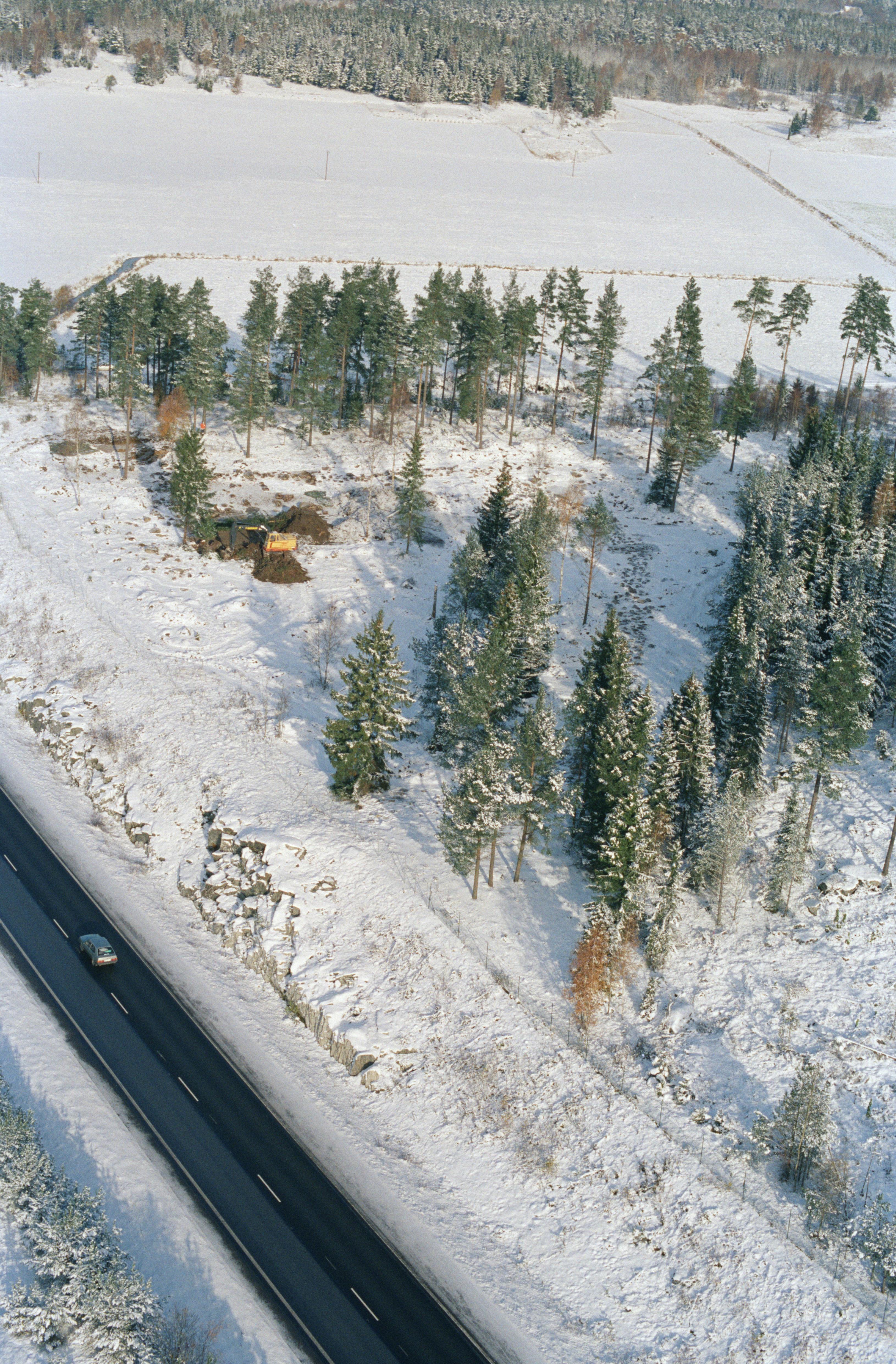 Beskrivning: Arkeologisk undersökning innan bygge av järnväg (Arlandabanan) i Rickebyåns dalgång vid Åslunda by sydost om Svartsjön. Bo- och gravplats med hägnad RAÄnr Odensala 401:1-3 och gravrösen Odensala 4:1-2. Bilden är tagen mot (väderstreck): NNO