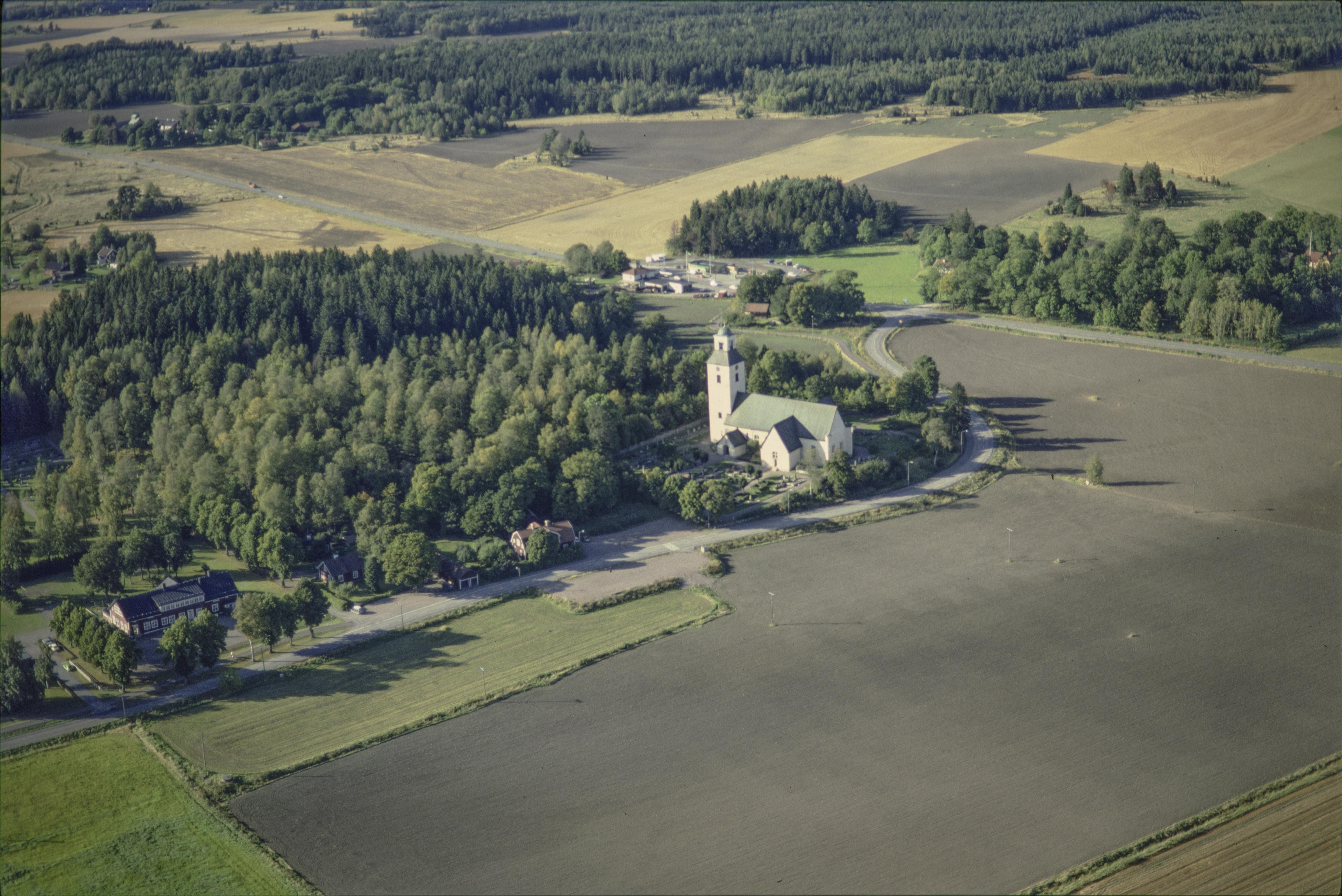 Beskrivning: Rasbo kyrka och kyrkby. Bilden är tagen mot (väderstreck): NV