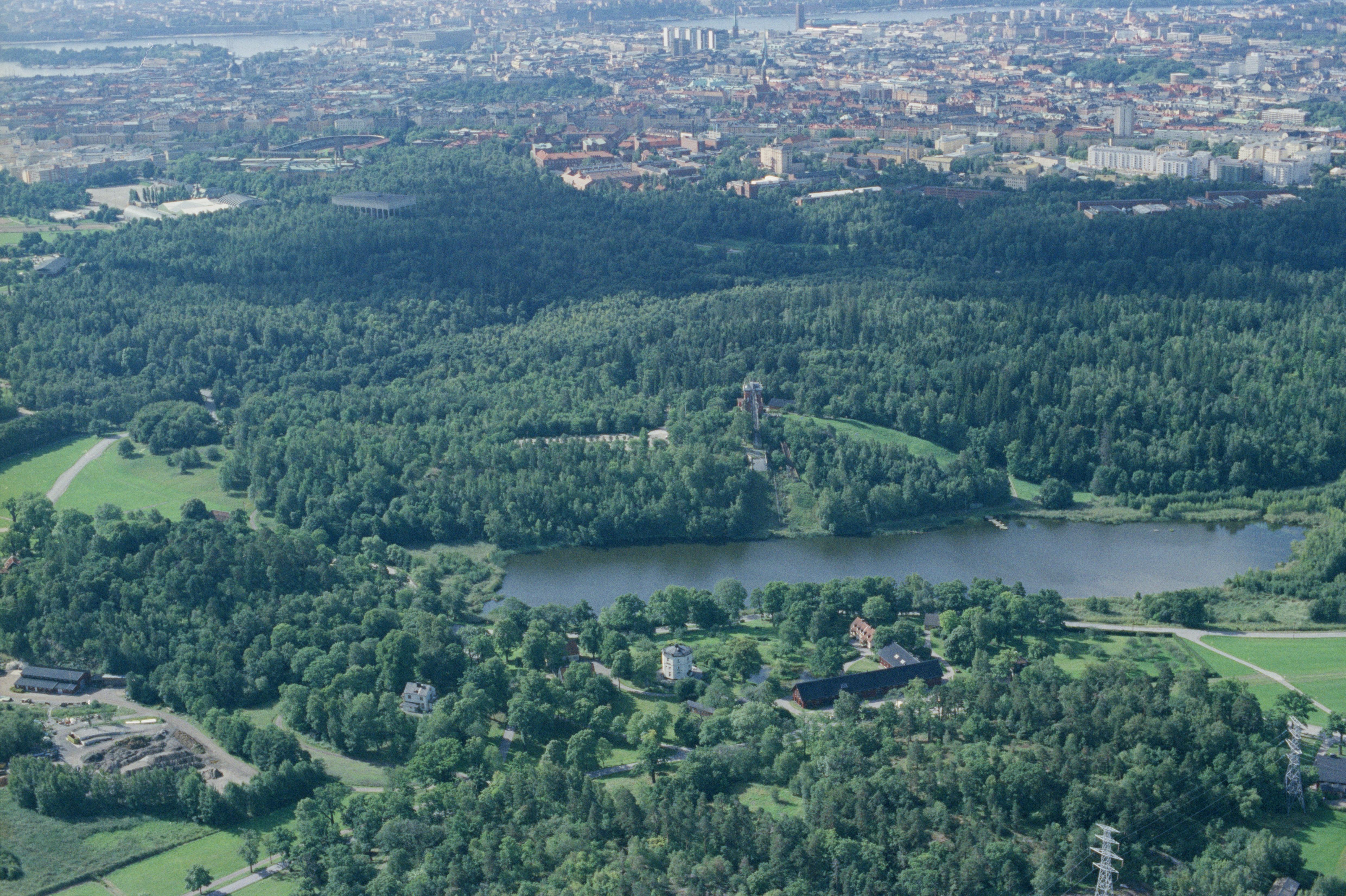 Beskrivning: Under bildens mitt området och gården Stora Skuggan statligt byggnadsminne RAÄnr Stockholm 84:1 vid sjön Laduviken. Vid bildens mitt Fiskartorpet . I bildens övre del Stockholms innerstad. Bilden är tagen mot (väderstreck): S
