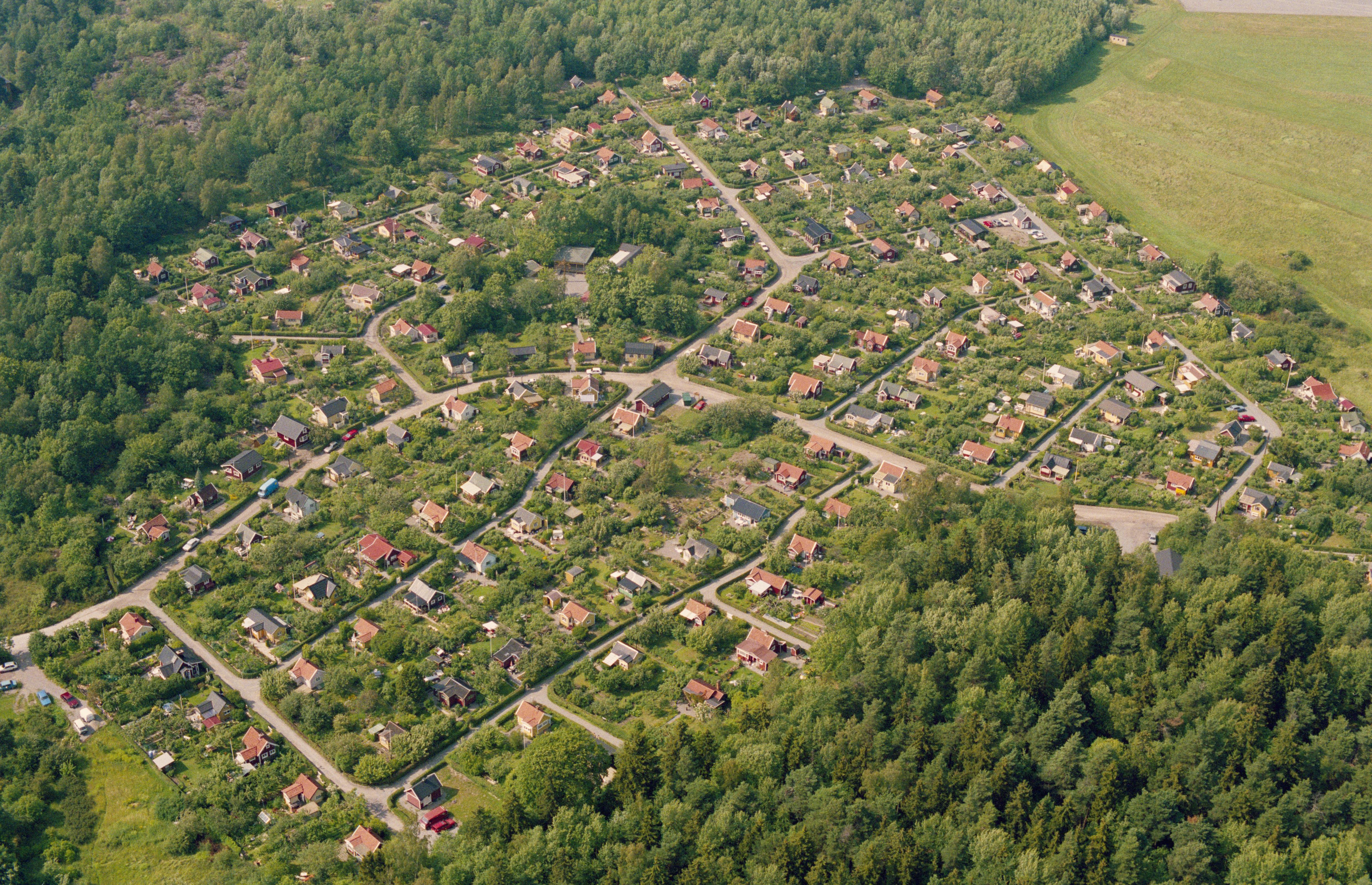 Beskrivning: Riksby koloniområde i stadsdelen Bromma i Stockholms Västerort. Bilden är tagen mot (väderstreck): NNV