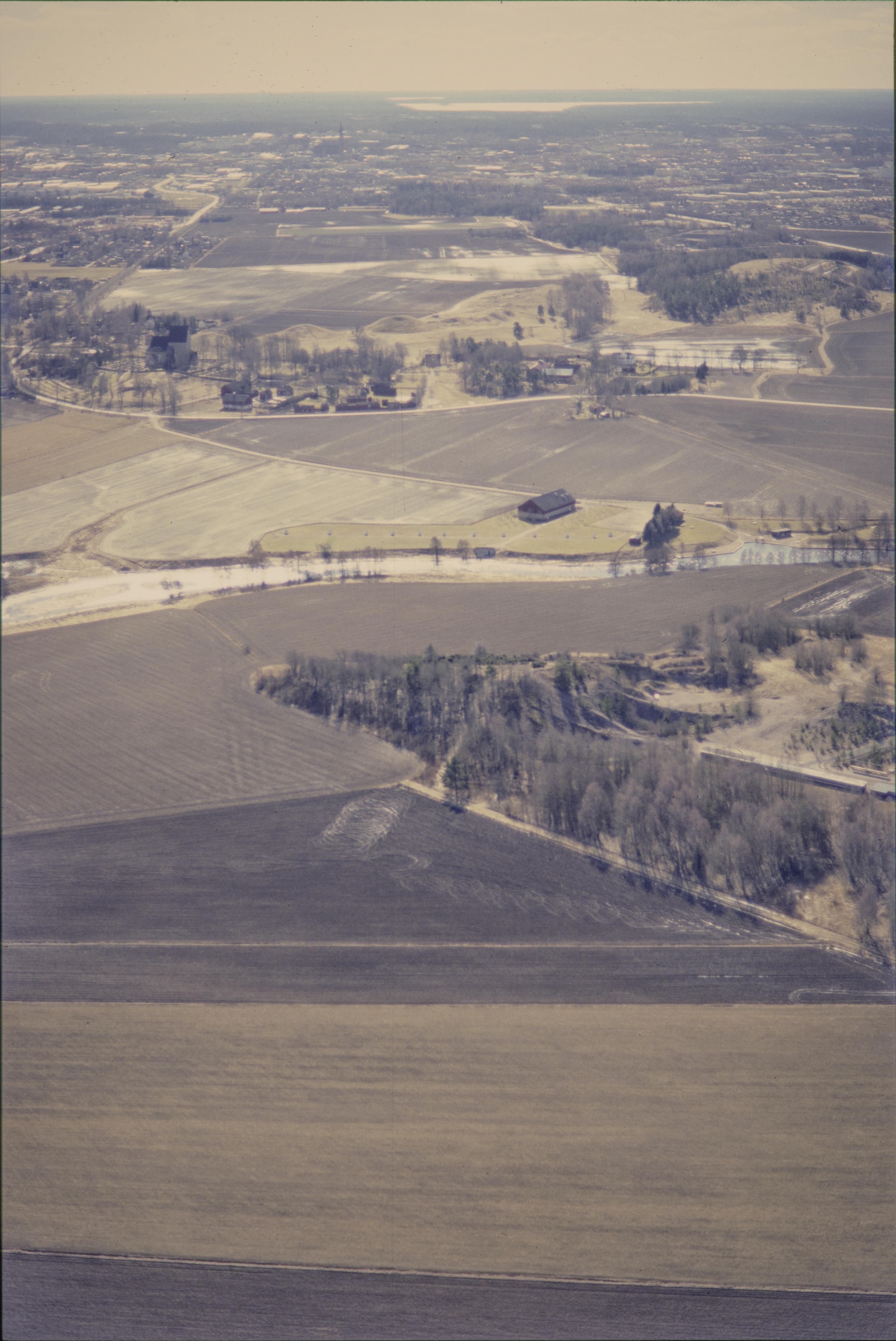 Beskrivning: Fyrisåns dalgång. Över bildens mitt Gamla Uppsala kyrka RAÄnr Uppsala 774, Kungshögarna gravfält Uppsala 123:1, boplats Uppsala 263:1 m.fl. Bilden är tagen mot (väderstreck): S