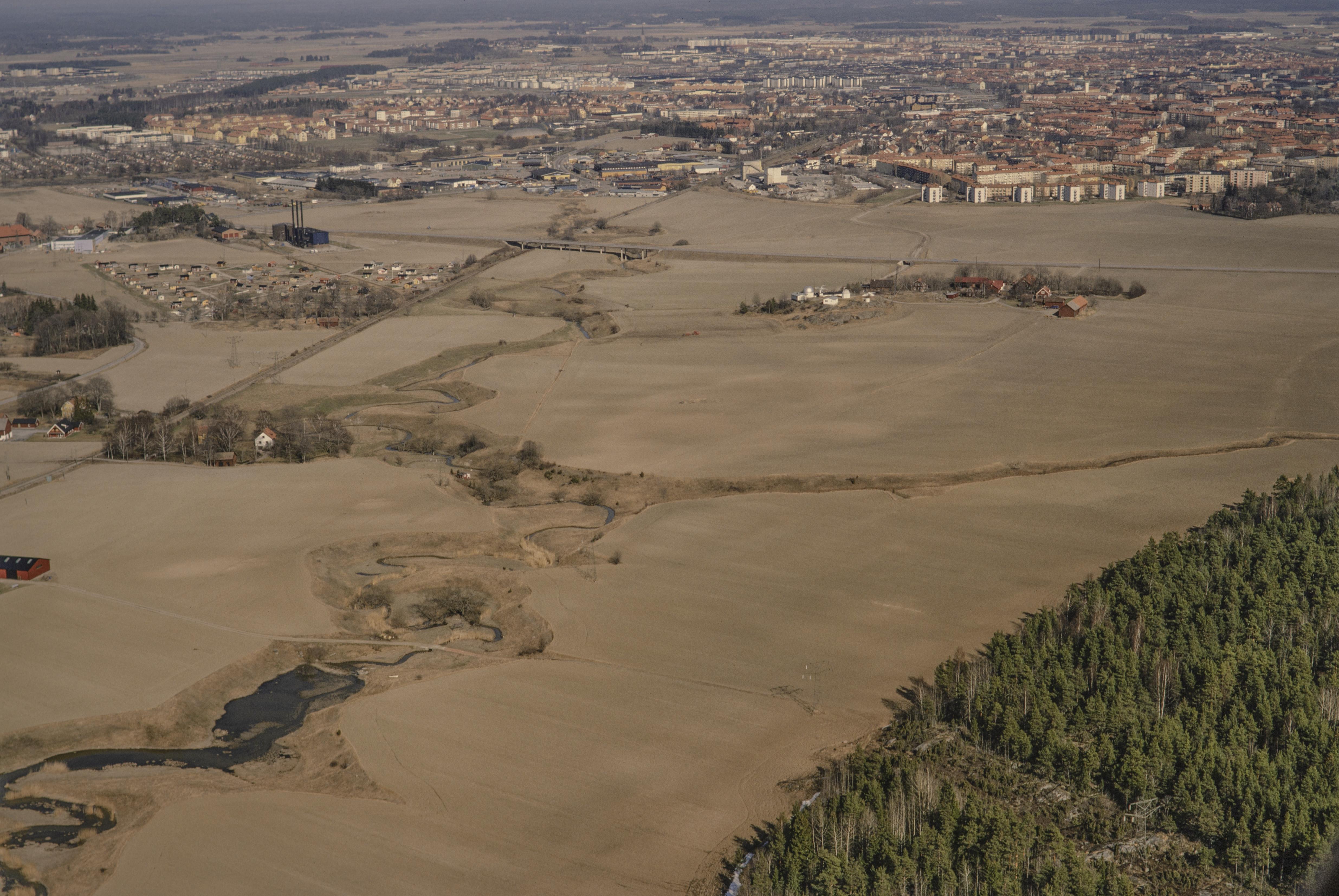 Beskrivning: Över bildens mitt Hällby med koloniområde, byggnader med observatorium för geodesi (Uppsala universitet), hög RAÄnr Uppsala 322:1 och boplats RAÄnr Uppsala 735. Ån Librobäck mot öster. I bildens övre del Uppsala stad. Bilden är tagen mot (väderstreck): Ö