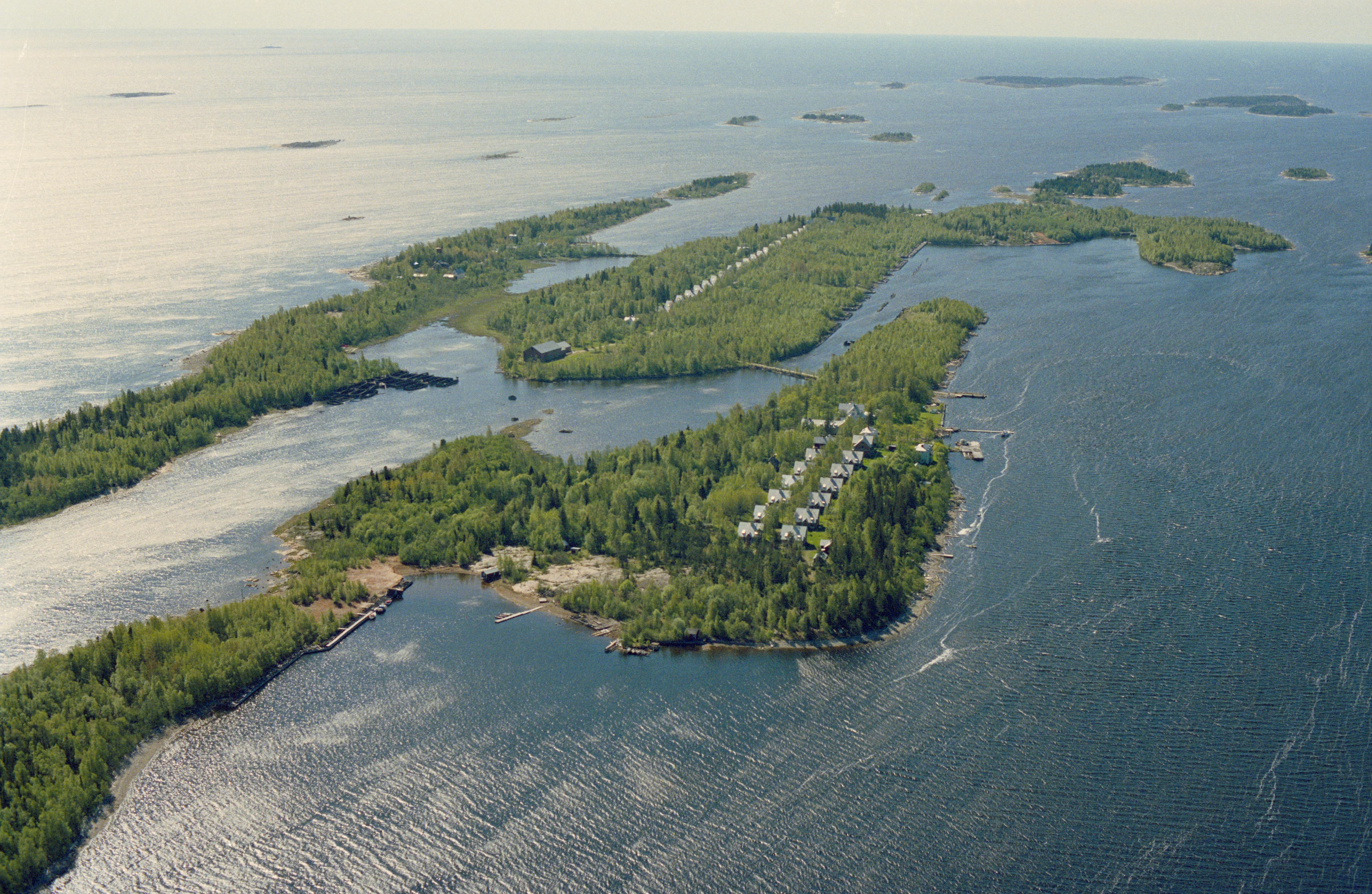 Beskrivning: Ögruppen Norrbyskär i norra delen av Örefjärden. Tidigare industriort med ångdrivet sågverk, arbetarbostäder, herrgård, skola med kyrksal, kägelbana m.m. anlagd på 1890-talet. Vid Per-Ivarsgrundet till vänster över bildens mitt en gistgård RAÄnr Hörnefors 29:1. Bilden är tagen mot (väderstreck): OSO