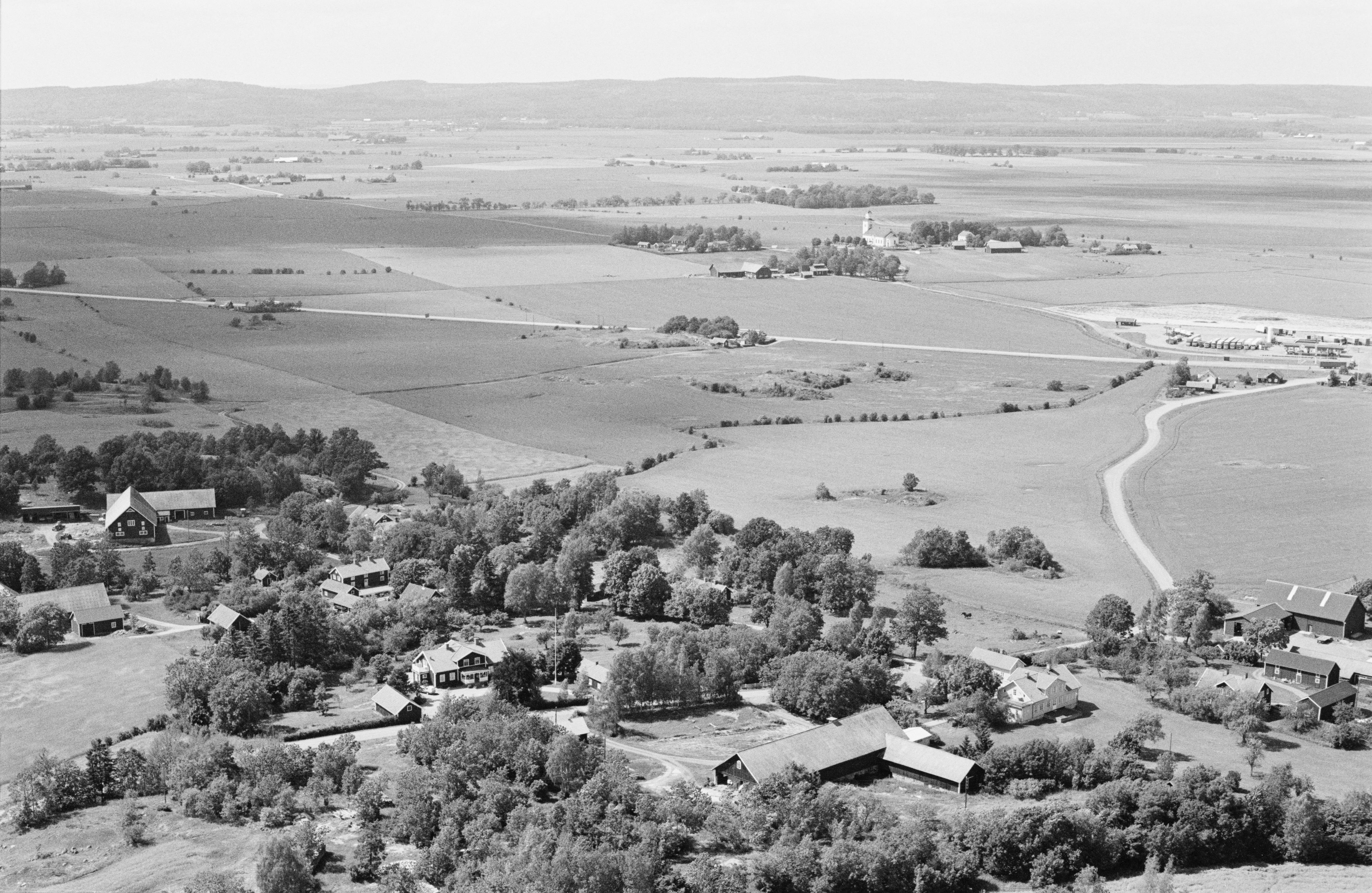 Beskrivning: Anmärkning (övrig): Riksintresse-nr/namn: E1b <E1-7> - Omberg - Tåkernområdet. Socknar: Appuna, Kumla, Ödeshög, Västra Tollstad, Svanshals, Rök, Heda, Stora Åby +<Väderstad, Örberga>. Motivering: Centralbygd och slättbygd med goda odlingsbetingelser, brukad sedan yngre stenålder och hemvist för kunga- och stormannaätter och till dem relaterade andliga institutioner. Området hade konstituerande betydelse i Sveriges statsbildningsprocess under yngre järnålder och tidig medeltid. En utpräglad agrar stordriftsbygd sedan laga skiftet, där de stora gårdarna, som bildats genom arenderings- och sammanläggningsföretag, samt sänkningen av Tåkern, tydligare än någon annanstans i landet, speglar jordbruksföretagens roll i(…) Texten i detta fält har förkortats vid migrering till e-arkivet. Se filbilagan extra.xml för fullständig information under note_archivist. Beskrivning: Vid bildens mitt boplats RAÄnr Rök 6:1 m.fl. I bildens övre del Röks kyrka och runstenen Rökstenen RAÄnr Rök 1:1 / Ög136. Bilden är tagen mot (väderstreck): NV Fotosyfte: Flygbildsdokumentation