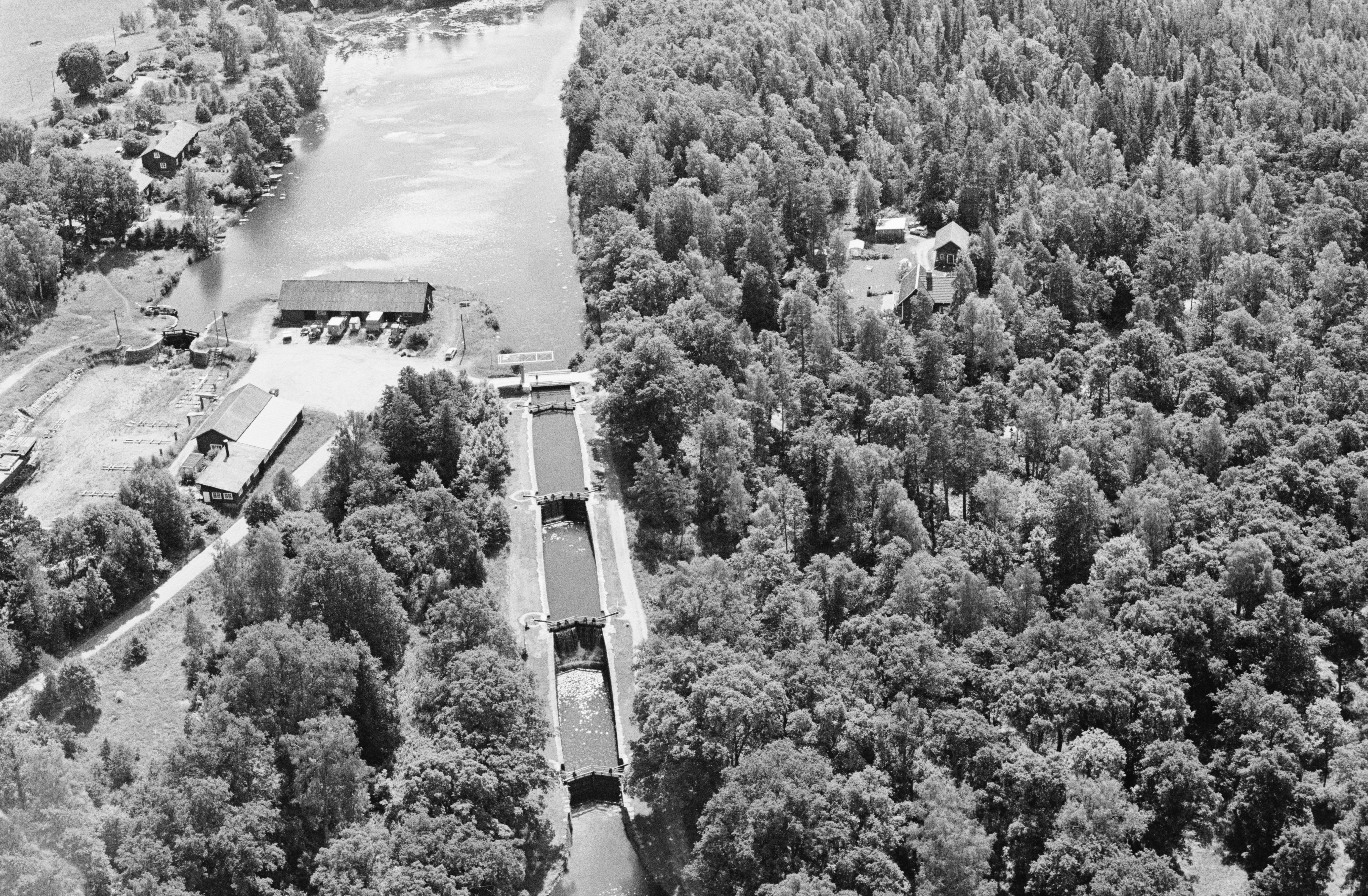 Beskrivning: Anmärkning (övrig): Riksintresse-nr/namn: U3 - Hjälmare kanal. Socken: Arboga. Motivering: Kanalmiljö, landets äldsta kanal färdig 1639. - Uttryck för riksintresset: Kanalens äldre sträckning från 1600-talet har stort kommunikationshistoriskt intresse. Nuvarande kanaldragning från 1819-29 ligger öster om den gamla. Varv i Hjälmare docka. De längs kanalen planterade ekarna som ursprungligen var avsedda som reparationsvirke för båtar. [Texten uppdaterat av Riksantikvarieämbetet våren 2013.] Beskrivning: Hjälmare kanal. Slussanläggning Hjälmare docka vid Hällby, söder om Stora Vallby gård och Oppeby. Bilden är tagen mot (väderstreck): S Fotosyfte: Flygbildsdokumentation