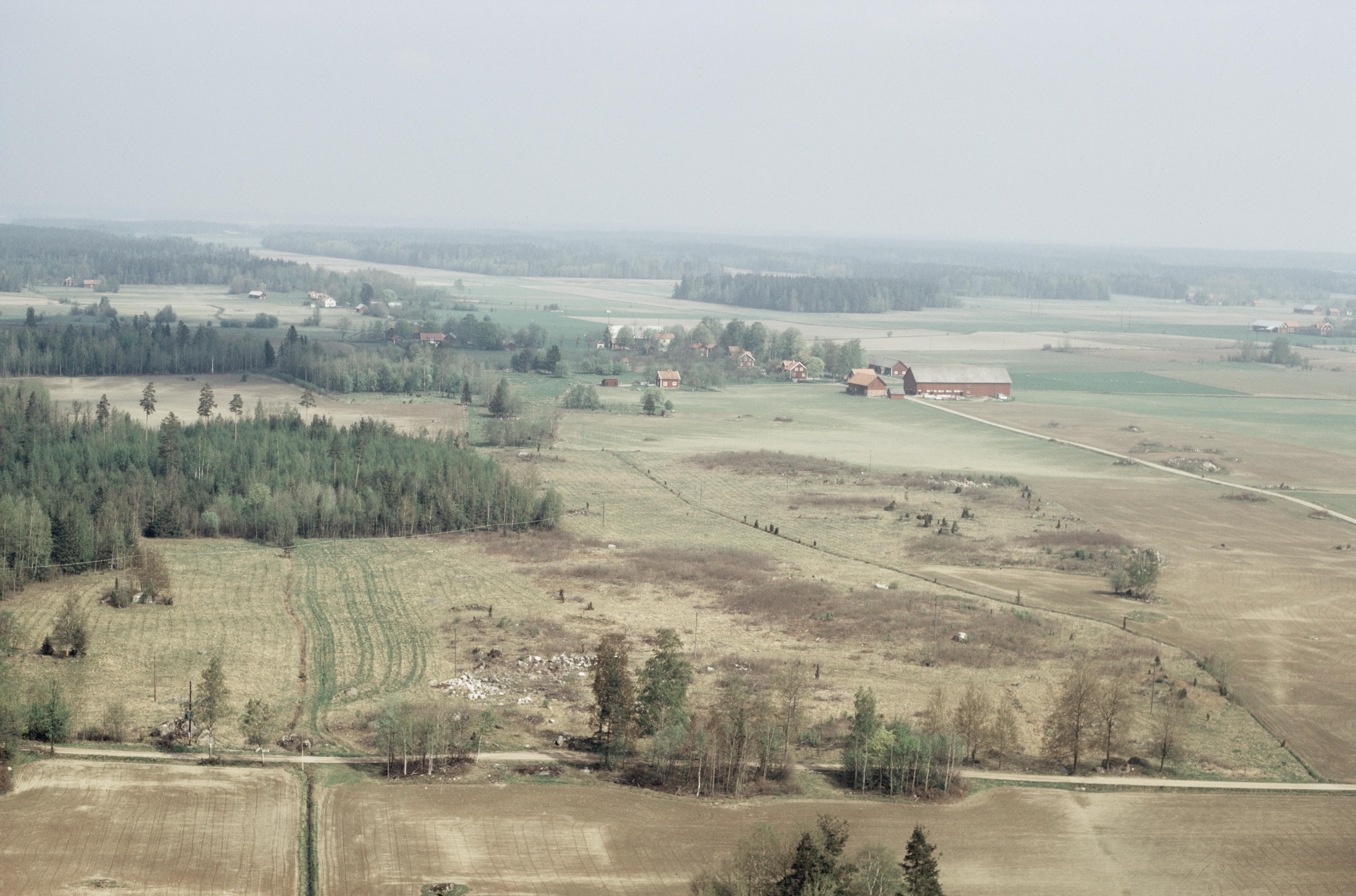 Beskrivning: Råberga vid Horsten. Vid bildens mitt fornåkrar RAÄnr Täby 77:1 och 78:1. Uppe till höger Råberga gamla tomt Täby 60:2. Bilden är tagen mot (väderstreck): NO