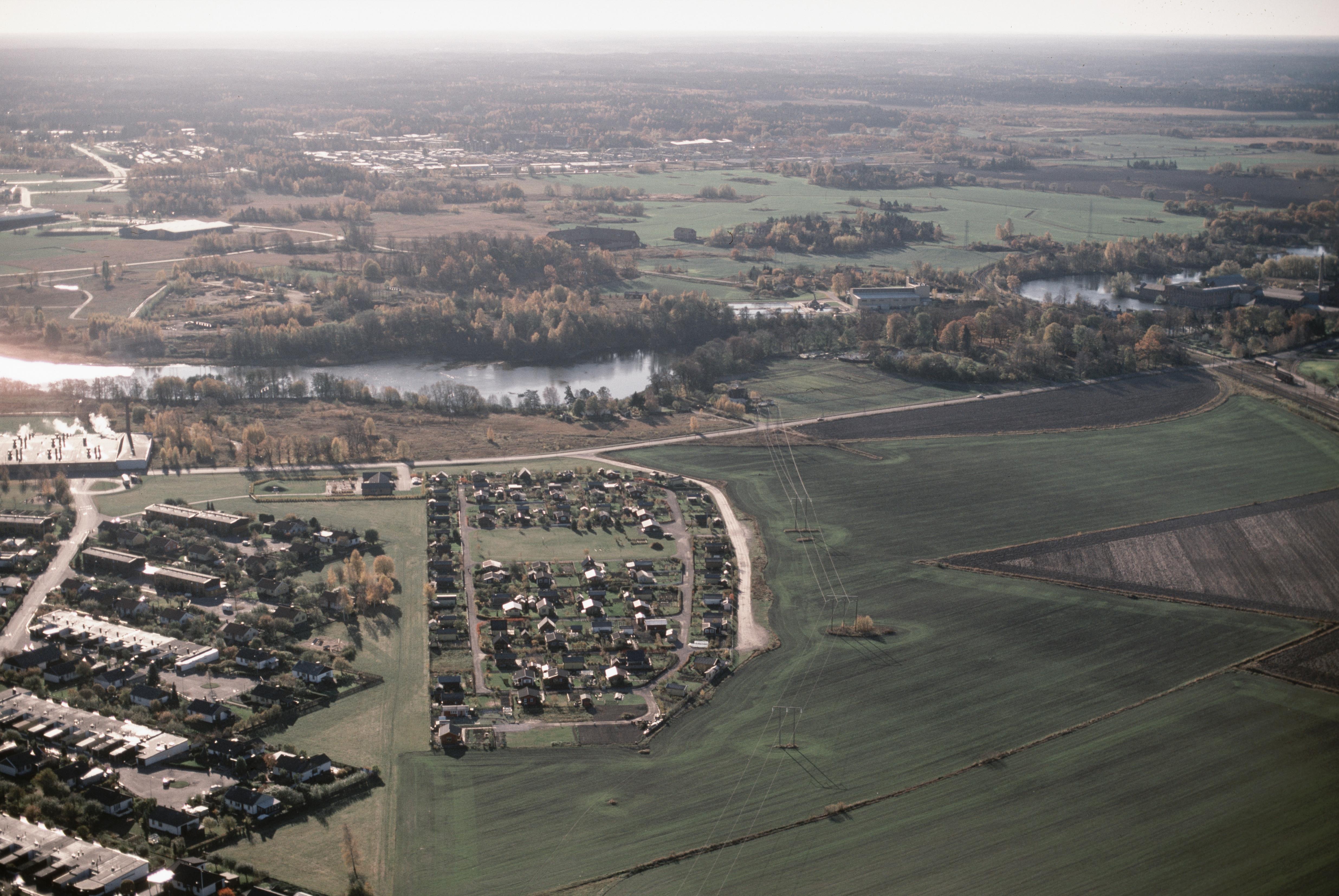 Beskrivning: Ån Motala ström mellan tid. socknar Östra Eneby och Borg (i bildens övre del). Vid bildens mitt färdväg och boplats RAÄnr Östra Eneby 100:1 och 207:1 vid stadsdelen Pryssgården. Bilden är tagen mot (väderstreck): SV