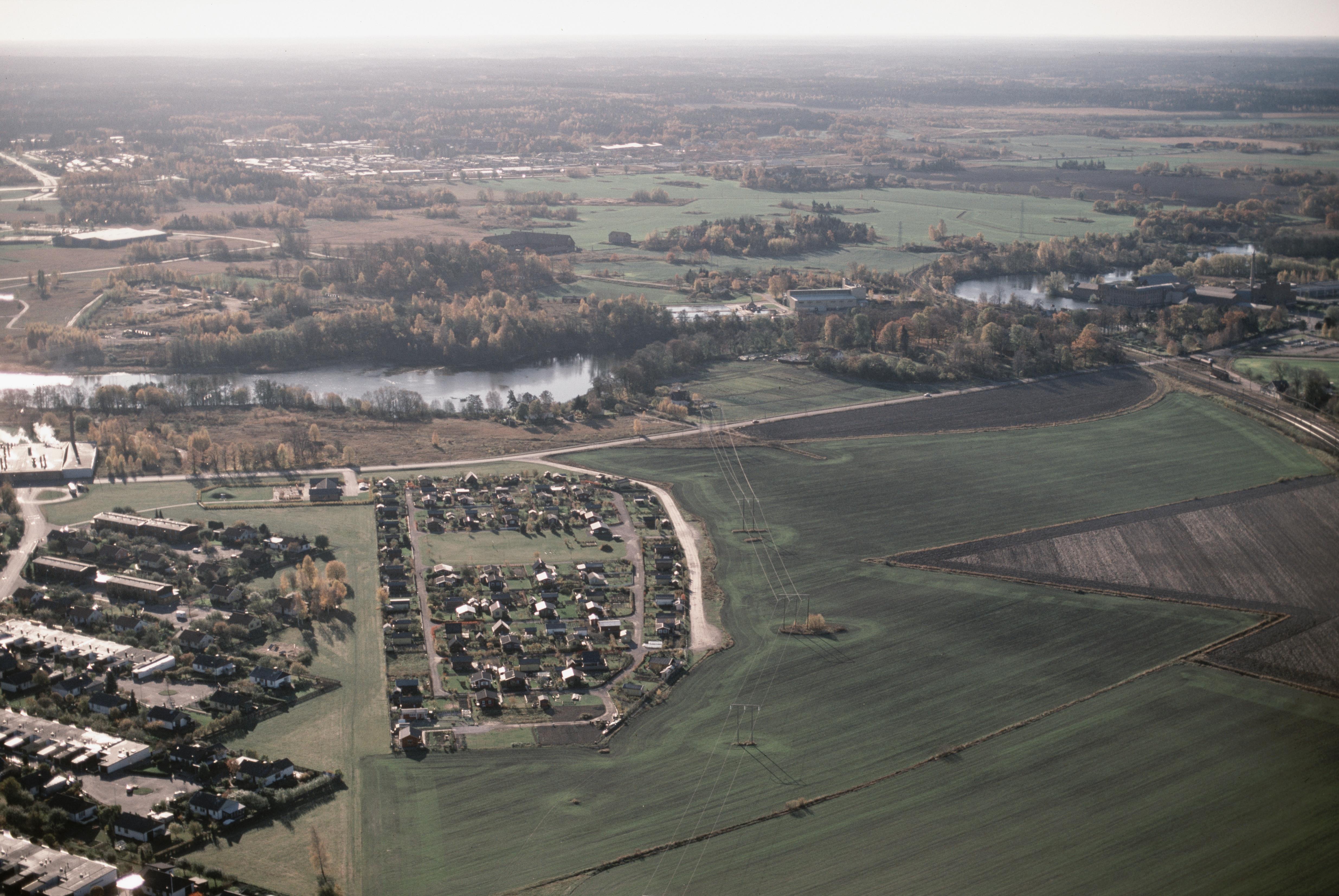 Beskrivning: Ån Motala ström mellan tid. socknar Östra Eneby och Borg (i bildens övre del). Vid bildens mitt färdväg och boplats RAÄnr Östra Eneby 100:1 och 207:1 vid stadsdelen Pryssgården. Bilden är tagen mot (väderstreck): SV