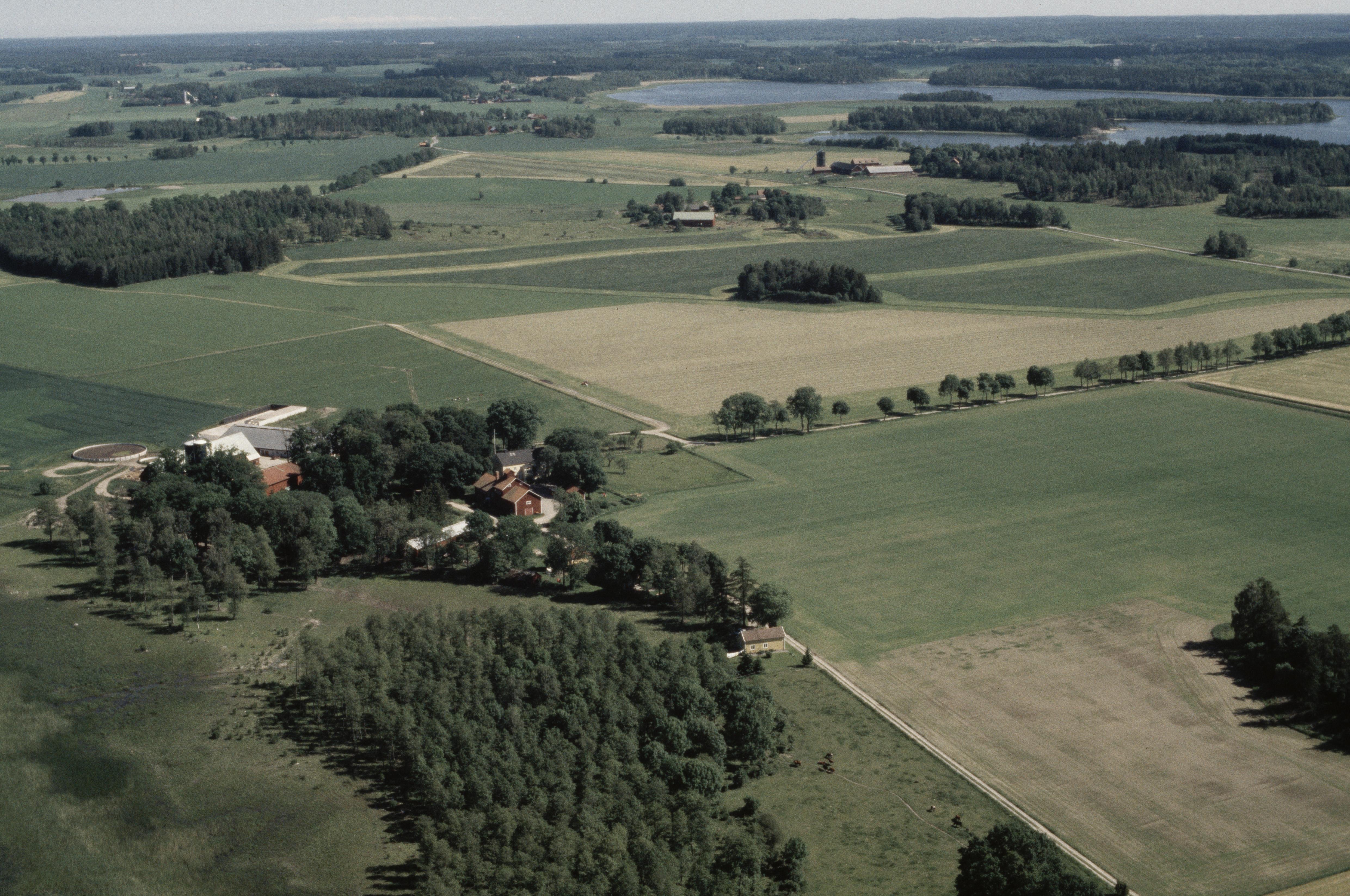 Beskrivning: Till vänster Kjulsta gård. Gravfält Kummelbacken RAÄnr Stigtomta 135:1 vid bildens mitt. I bildens övre del sjön Yngaren. Bilden är tagen mot (väderstreck): SO