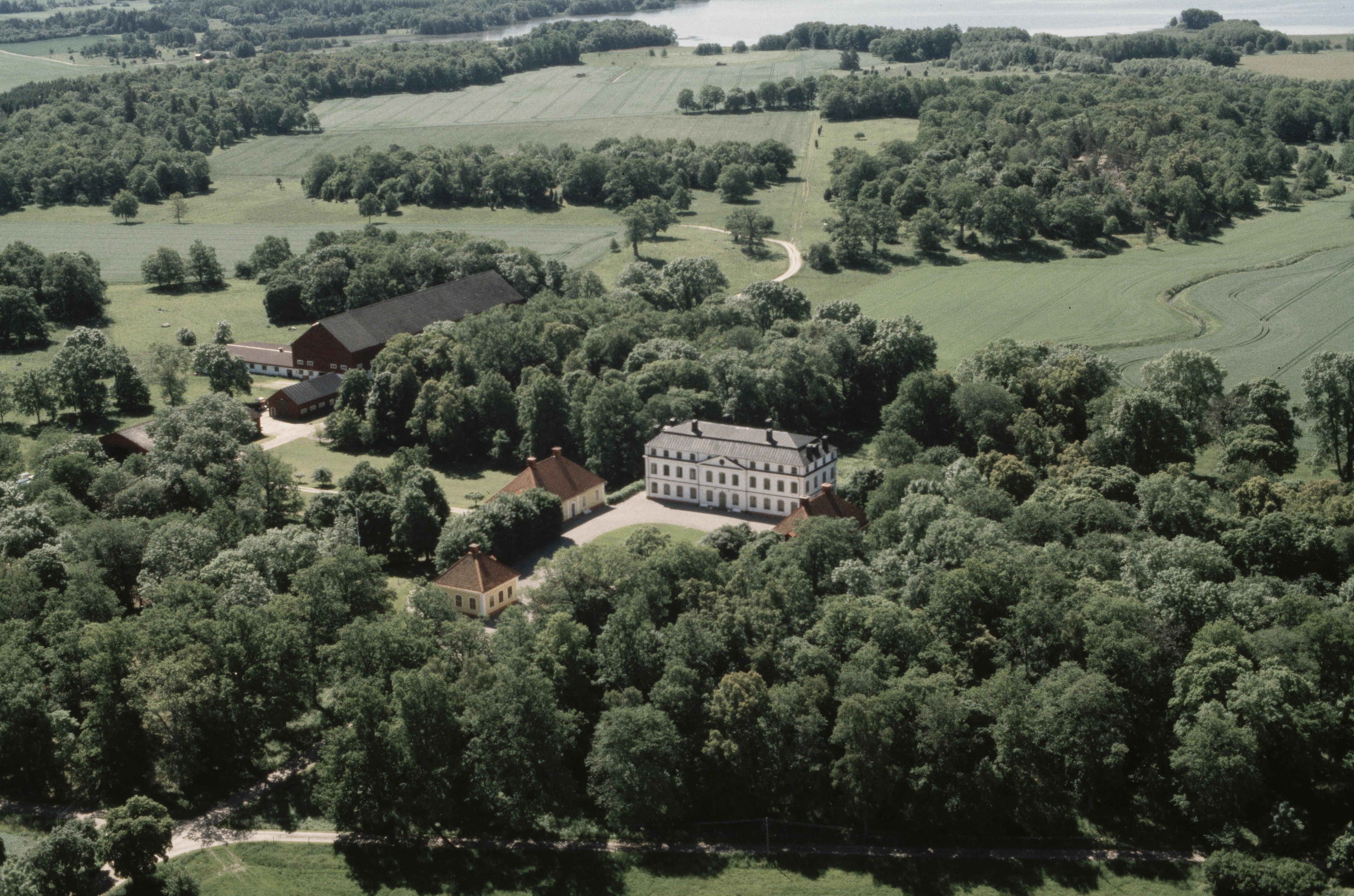Beskrivning: Bergshammars herrgård RAÄnr Fogdö 109:1. I bildens övre del Sörfjärden i Mälaren. Bilden är tagen mot (väderstreck): S