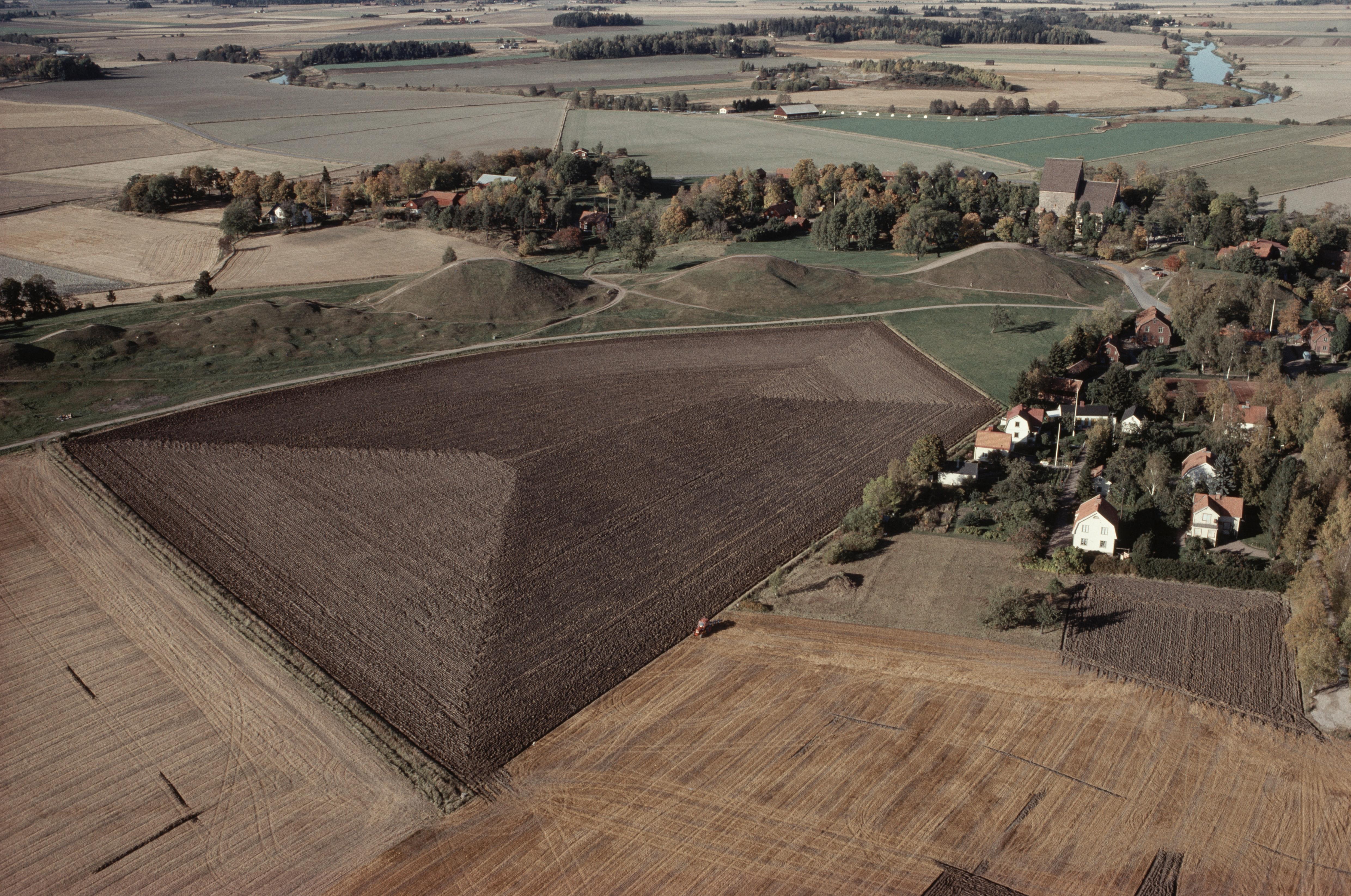 Beskrivning: Fyrisåns dalgång. I bildens övre del Gamla Uppsala kyrka RAÄnr Uppsala 774, Kungshögarna gravfält Uppsala 123:1, boplats Uppsala 263:1 m.fl. Bilden är tagen mot (väderstreck): NV