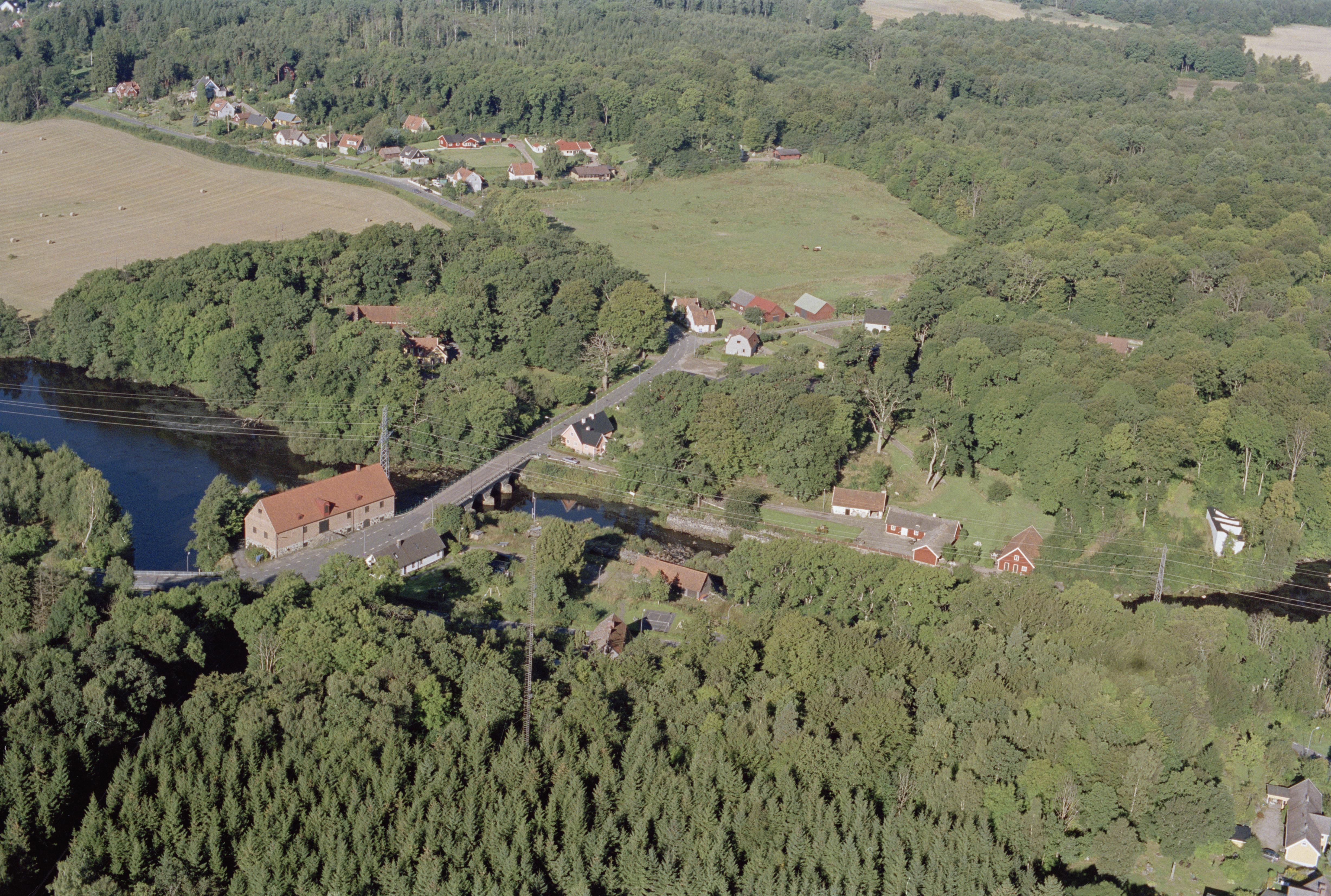 Beskrivning: Skrynarps gamla tomt RAÄnr Färlöv 123:1 och Torsebro krutbruk vid Helge å. Bilden är tagen mot (väderstreck): SV