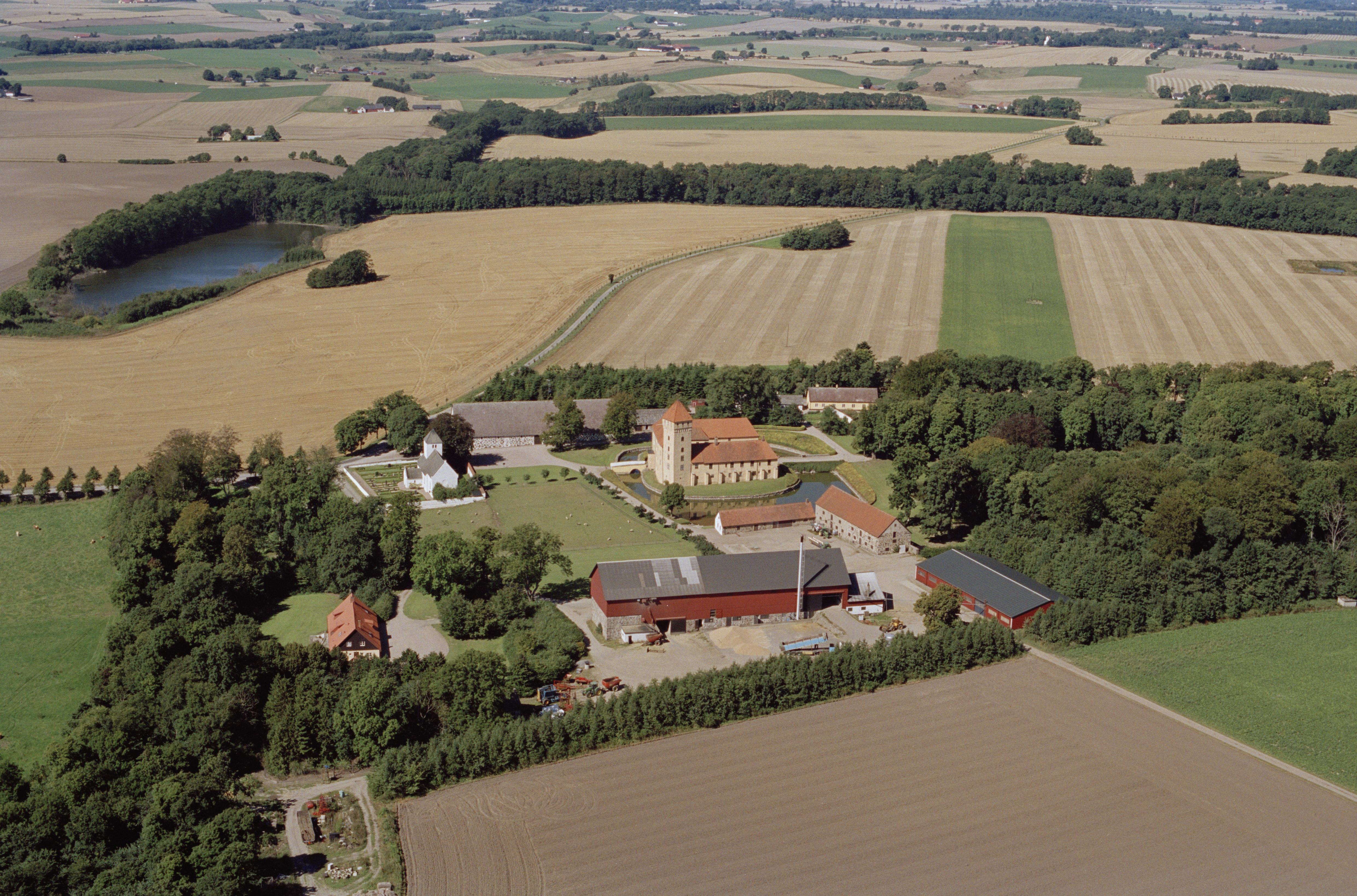 Beskrivning: Tosterups kyrka och Tosterups slott. Bilden är tagen mot (väderstreck): NV