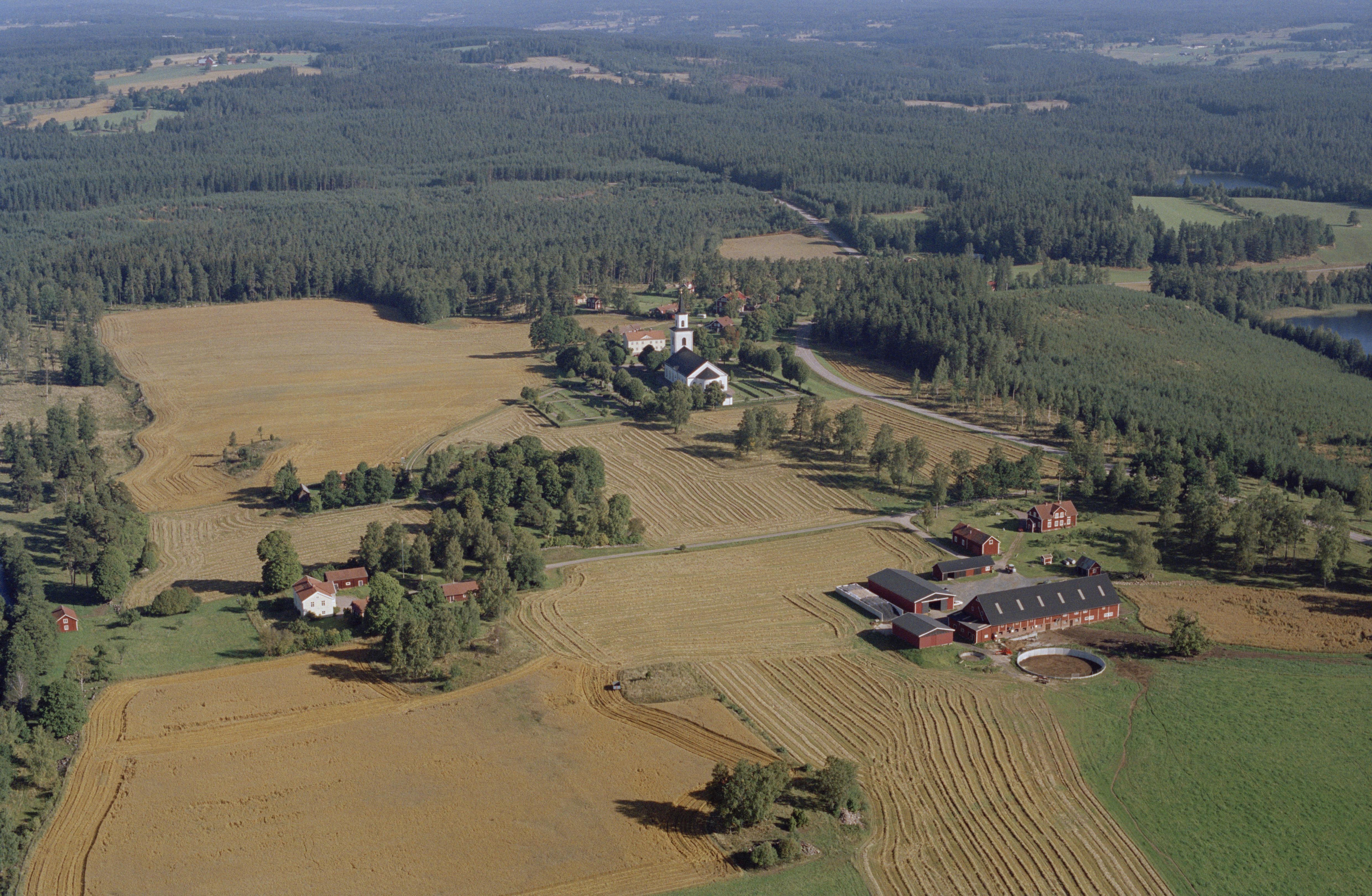 Beskrivning: Flisby kyrka och kyrkby. Bilden är tagen mot (väderstreck): N