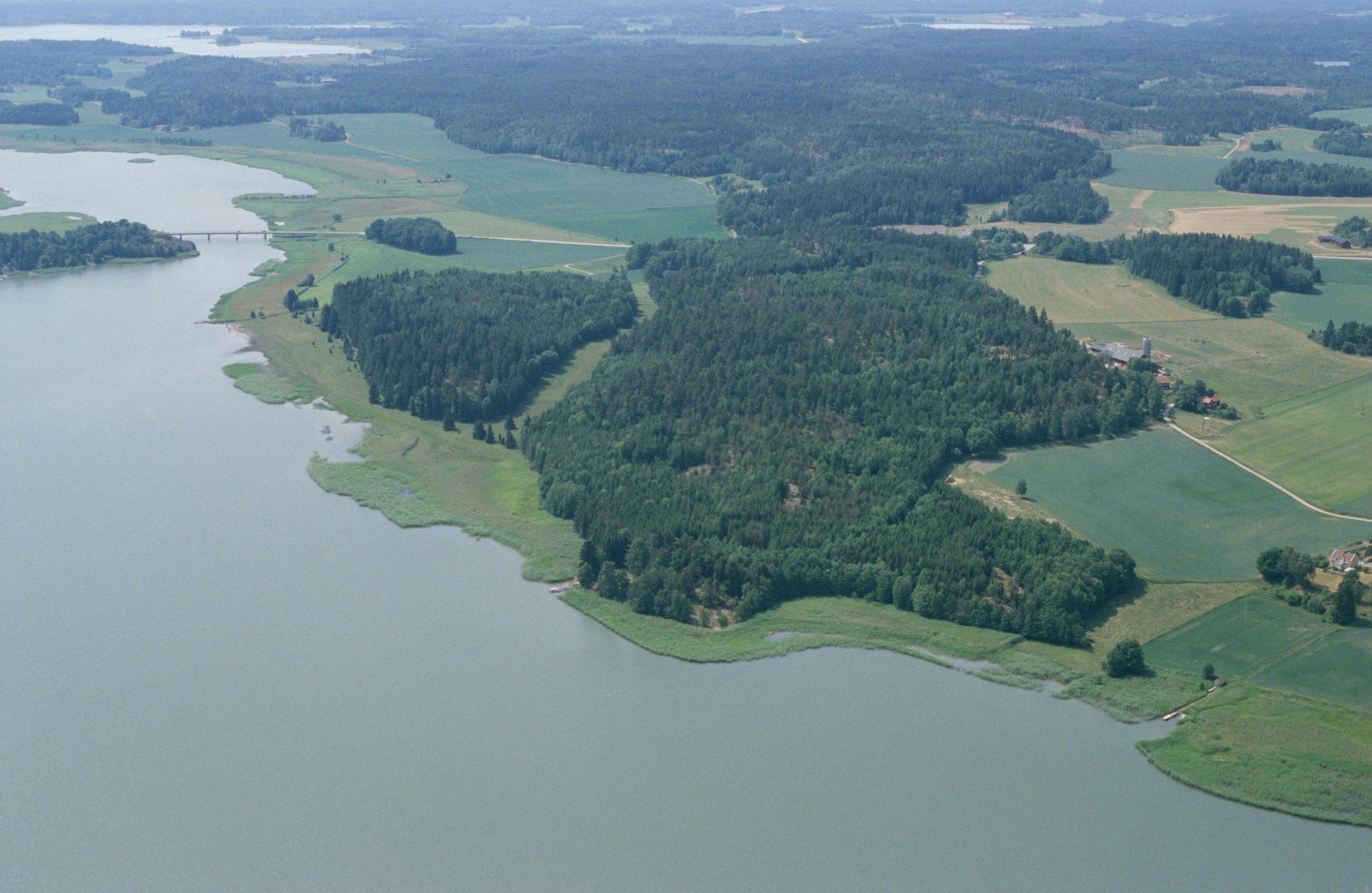 Beskrivning: Norafjärden och Pålsundet på gränsen mellan socknen Hölö och Mörkö. Uppe till vänster bron över till Kasholmen i Mörkö socken. Vid bron skans RAÄnr Hölö 169:1. Till höger Vinterhälla och Sund. Bilden är tagen mot (väderstreck): SSV