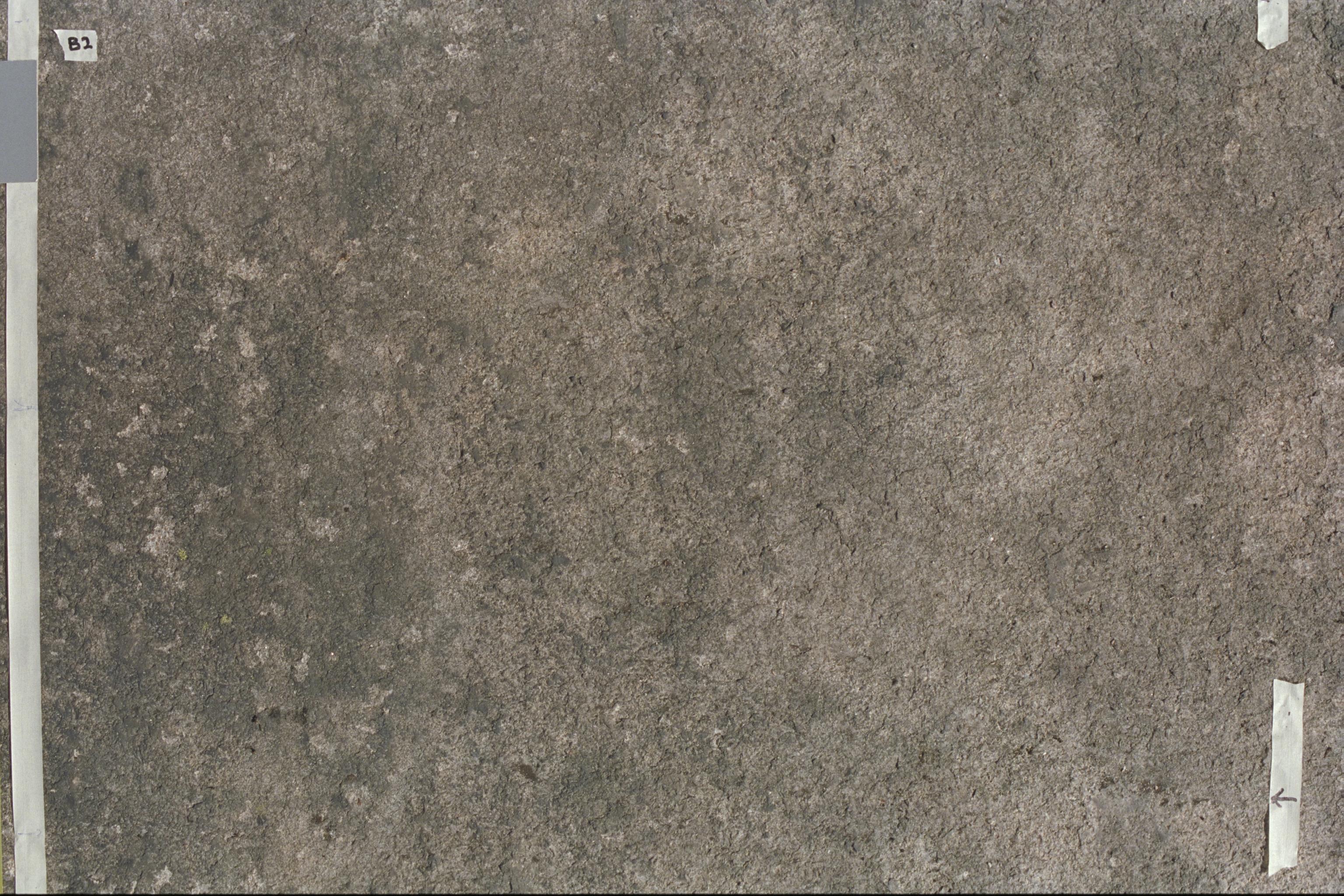 Beskrivning: Experimentytan, före resning av plåttak. Vittrad, ojämn yta.