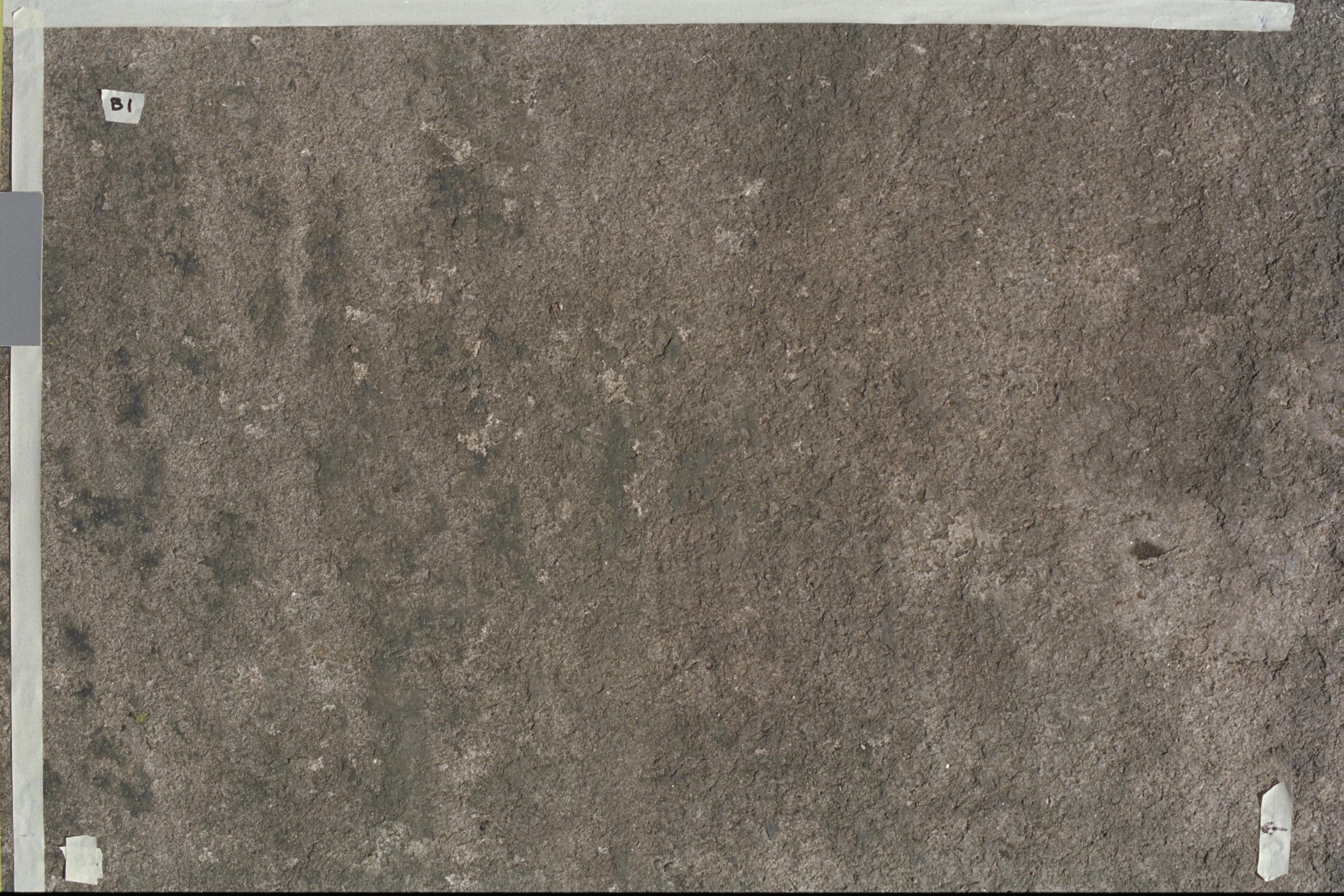 Beskrivning: Experimentytan, före resning av plåttak. Vittrad, ojämn yta.