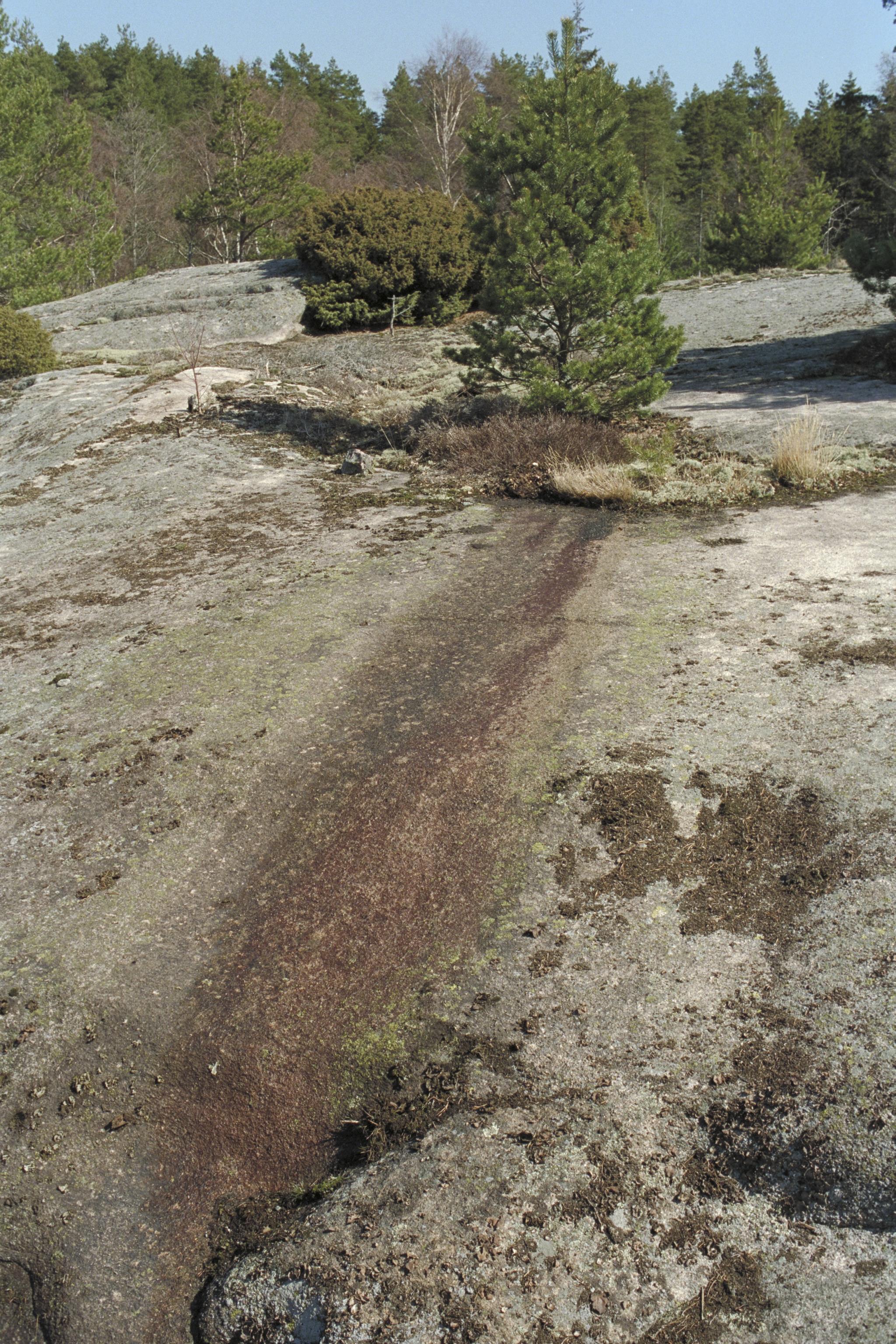 Beskrivning: Experimentytan, före resning av plåttak. Vattenstråk i omr. N del, referensområde.