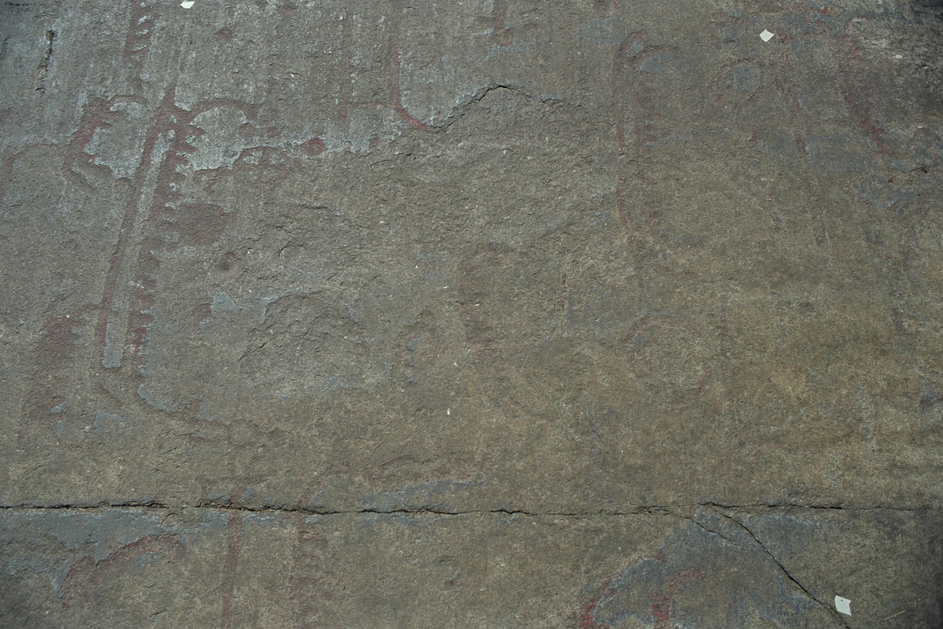 Beskrivning: Några av skeppsfigur på hällen (Kville 157:1).