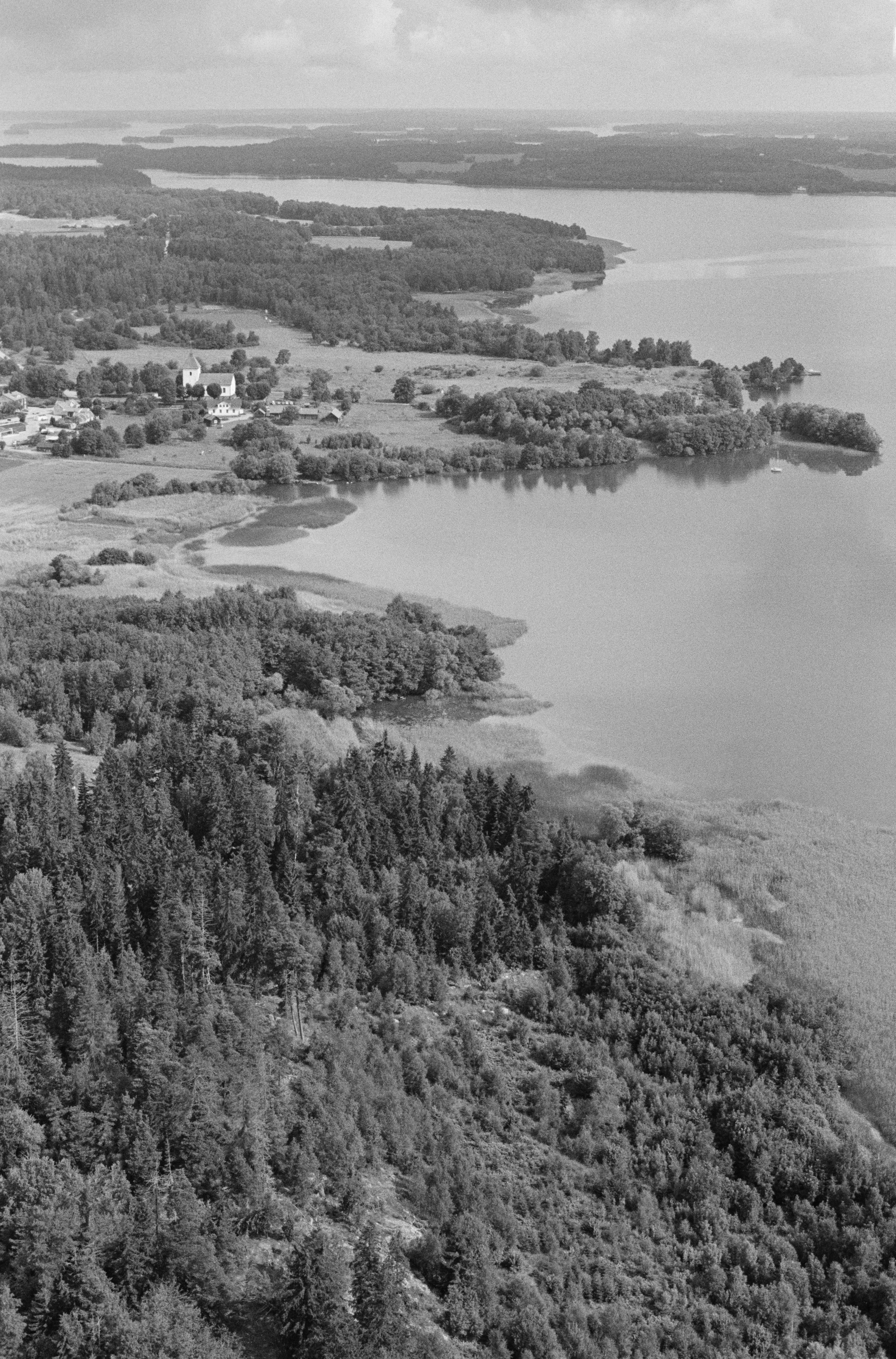 Beskrivning: Anmärkning (övrig): Riksintresse-nr/namn: AB21 och AB22 - Adelsö - Björkö-Birka. Socken: Adelsö. Motivering: Fornlämningsmiljö med kungsgården och Alsnö hus på Adelsö, och på Björkö platsen för Sveriges första stadsbildning (Birka), som visar på östra Mälardalens centrala roll för det svenska riket under järnåldern och den tidiga medeltiden, den politiska och ekonomiska makten och regionens handelsutbyte med internationell räckvidd. - Uttryck för riksintresset: På Adelsö Hovgårdskomplexet, som i storhögar, flera stora gravfält, stora husgrundsterrasser, hamnanläggning, fornborgen och en runsten samt i 1100-talskyrkan och ruinen av Alsnö hus visar på järnålderns kungsgård och dess fortsättning under medeltiden.(…) Texten i detta fält har förkortats vid migrering till e-arkivet. Se filbilagan extra.xml för fullständig information under note_archivist. Beskrivning: Fornlämningsområdet Hovgården RAÄnr Adelsö 46:2 på Adelsön vid Hovgårdsfjärden i Mälaren. Alsnö hus RAÄnr Adelsö 47:1, Adelsö kyrka, Kungshögarna Adelsö 48:1-6 m.fl. Bilden är tagen mot (väderstreck): NNO Fotosyfte: Flygbildsdokumentation