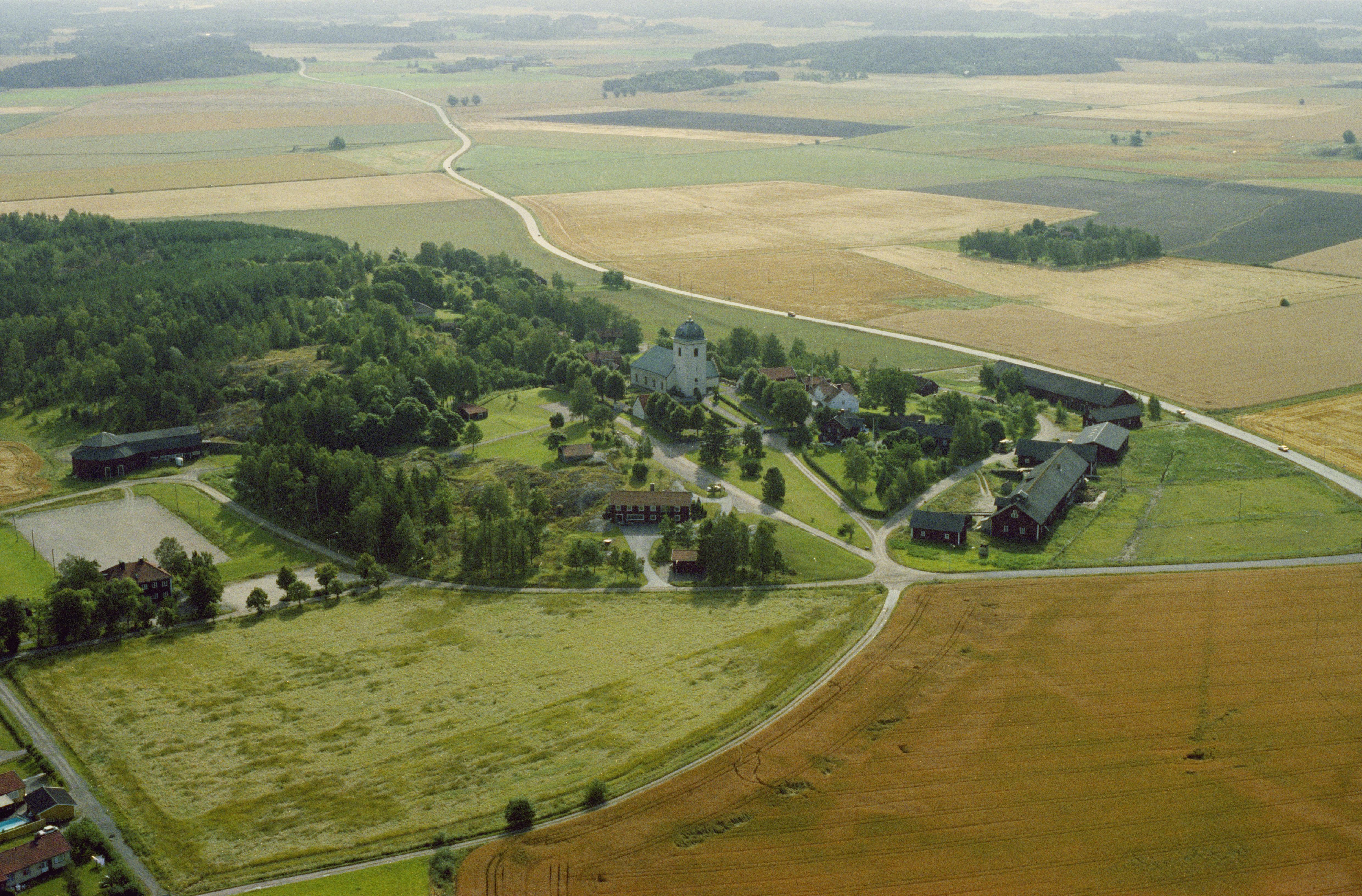 Beskrivning: Dagsbergs kyrka och kyrkby. Bilden är tagen mot (väderstreck): SO