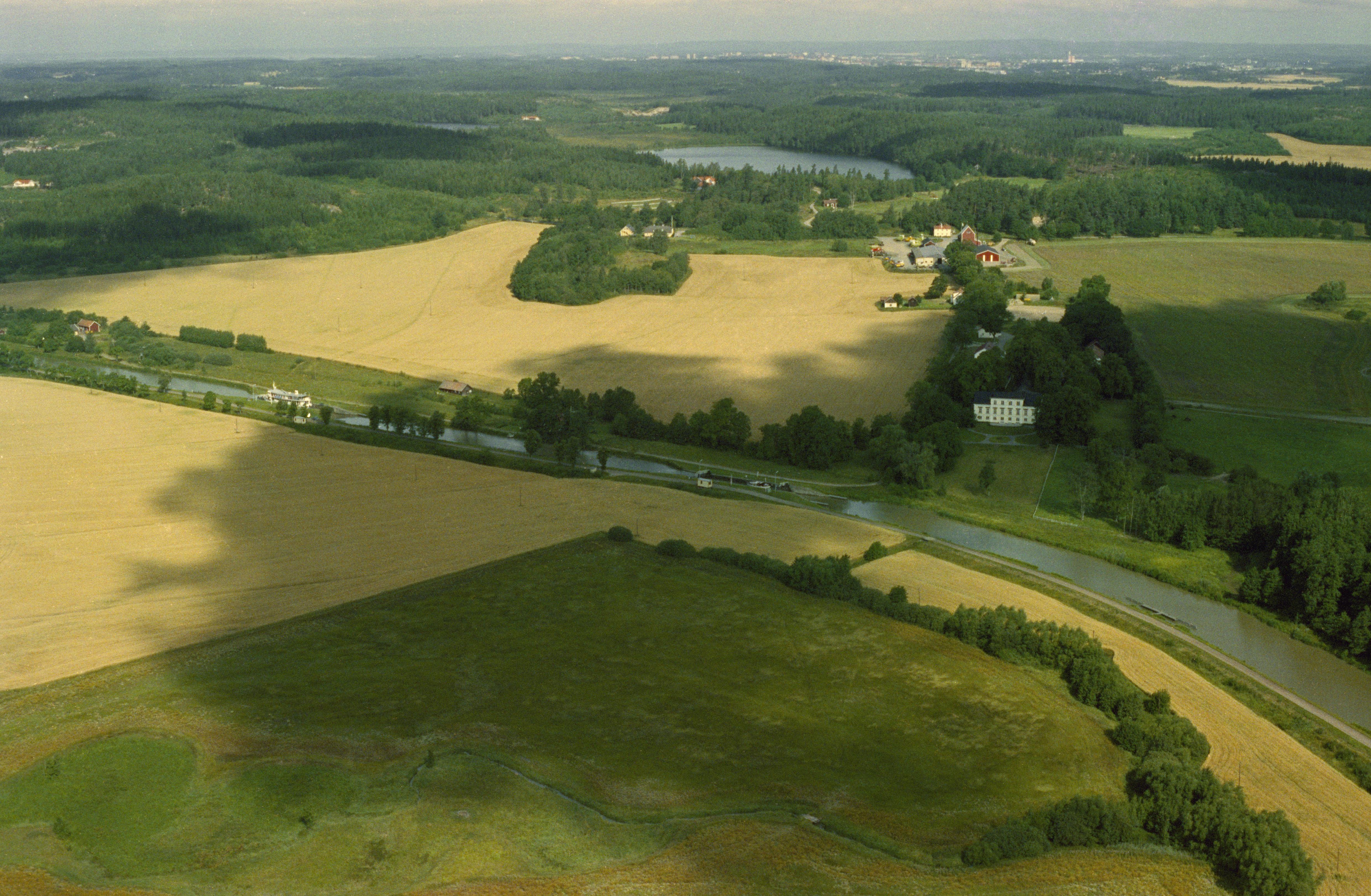 Beskrivning: Göta kanal. Mariehovs herrgård till höger om bildens mitt. Kanalmärke RAÄnr Drothem 283:1 till vänster om bildens mitt. Mariehov i bildens övre del. Bilden är tagen mot (väderstreck): NNV