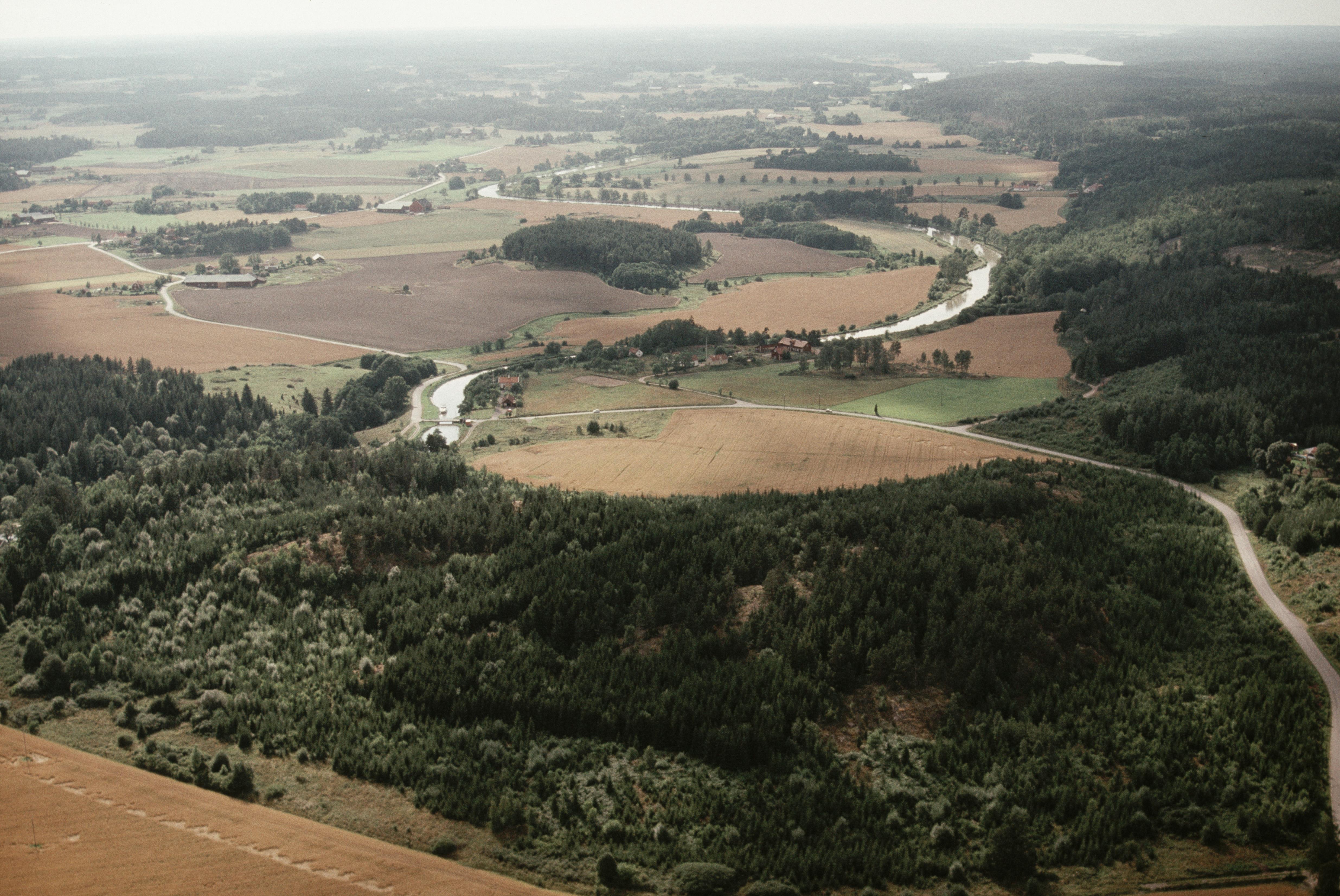 Beskrivning: Göta kanal. Vänneberga gård och kanalmärke RAÄnr Drothem 281:1 vid bildens mitt. I bildens övre del Västra Husby socken. Bilden är tagen mot (väderstreck): V