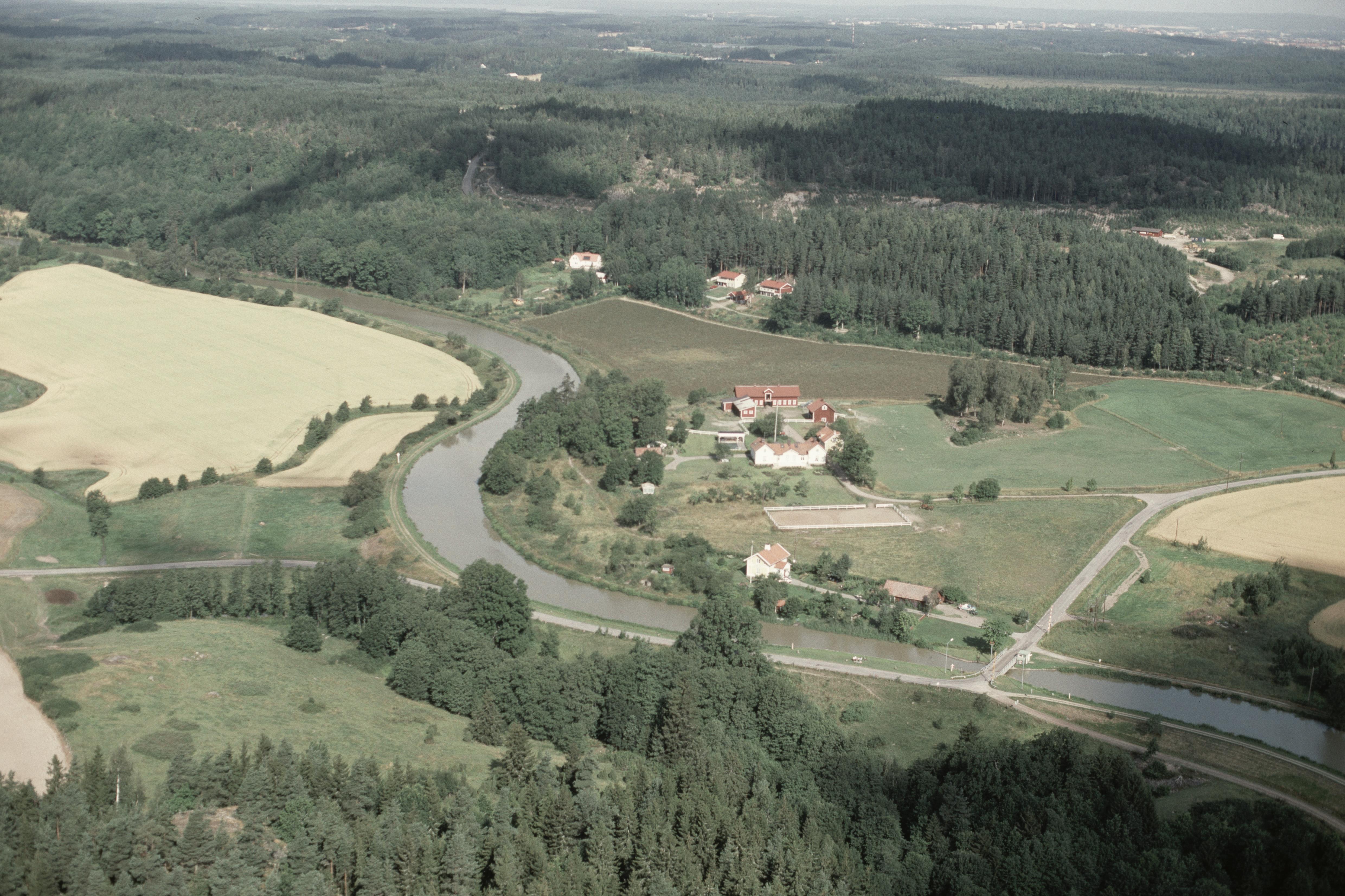 Beskrivning: Göta kanal vid Vänneberga gård. Kanalmärke RAÄnr Drothem 281:1 vid bildens mitt. Bilden är tagen mot (väderstreck): NV