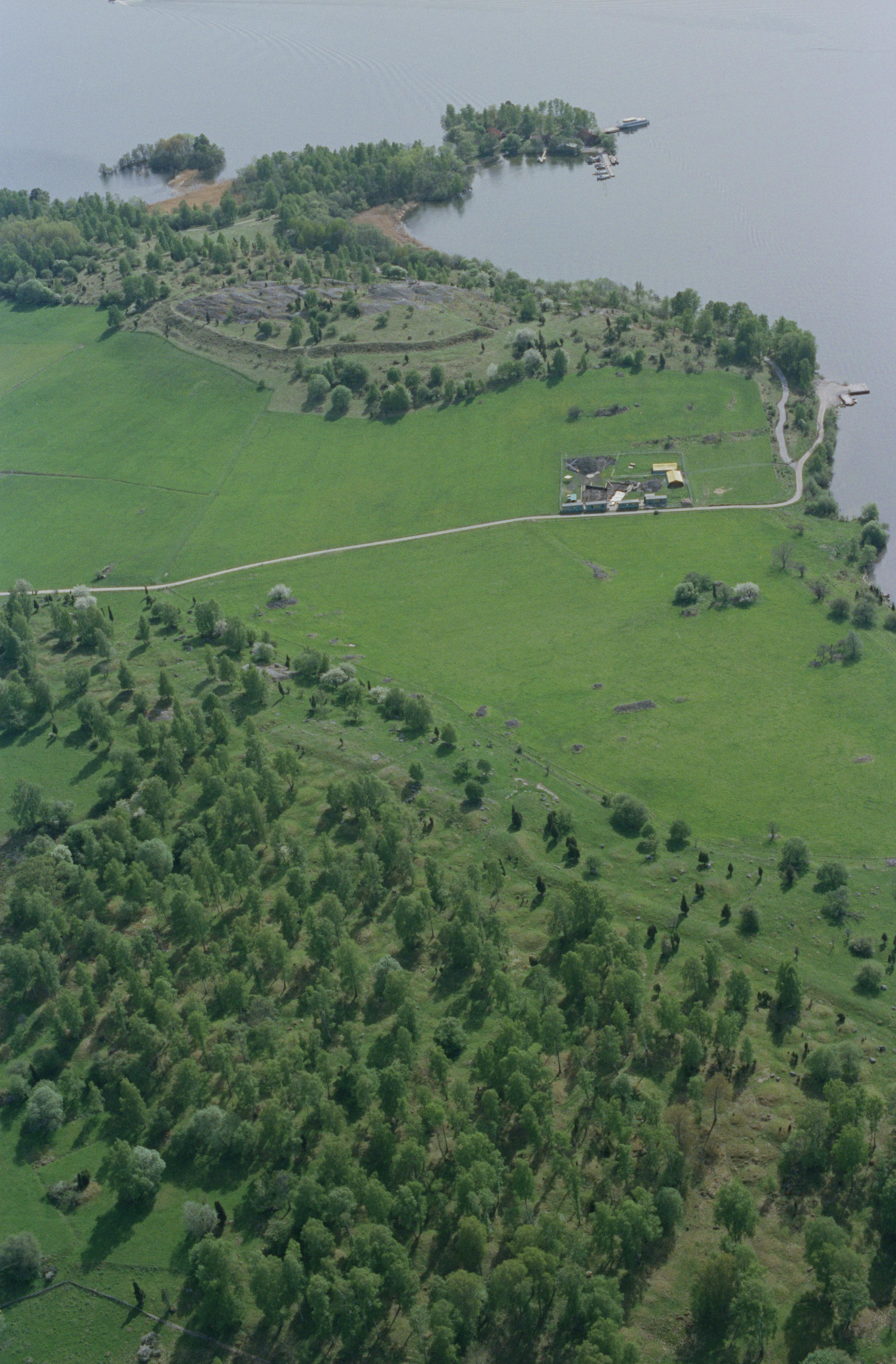 Beskrivning: Anmärkning (övrig): Riksintresse-nr/namn: AB21 och AB22 - Adelsö - Björkö-Birka. Socken: Adelsö. Motivering: Fornlämningsmiljö med kungsgården och Alsnö hus på Adelsö, och på Björkö platsen för Sveriges första stadsbildning (Birka), som visar på östra Mälardalens centrala roll för det svenska riket under järnåldern och den tidiga medeltiden, den politiska och ekonomiska makten och regionens handelsutbyte med internationell räckvidd. - Uttryck för riksintresset: På Adelsö Hovgårdskomplexet, som i storhögar, flera stora gravfält, stora husgrundsterrasser, hamnanläggning, fornborgen och en runsten samt i 1100-talskyrkan och ruinen av Alsnö hus visar på järnålderns kungsgård och dess fortsättning under medeltiden.(…) Texten i detta fält har förkortats vid migrering till e-arkivet. Se filbilagan extra.xml för fullständig information under note_archivist. Beskrivning: Fornlämningsområdet Birka på Björkö i Mälaren. Till höger om bildens mitt arkeologisk undersökning i bo- och gravplats Hemlanden och Svarta jorden RAÄnr Adelsö 118:1 vid Stadsvallen Adelsö 119:1-2. Uppe till vänster gravfält Borgs hage RAÄnr Adelsö 35:1 och fornborg Borg Adelsö 34:1 vid Ångholmen. Bilden är tagen mot (väderstreck): SV Fotosyfte: Flygbildsdokumentation