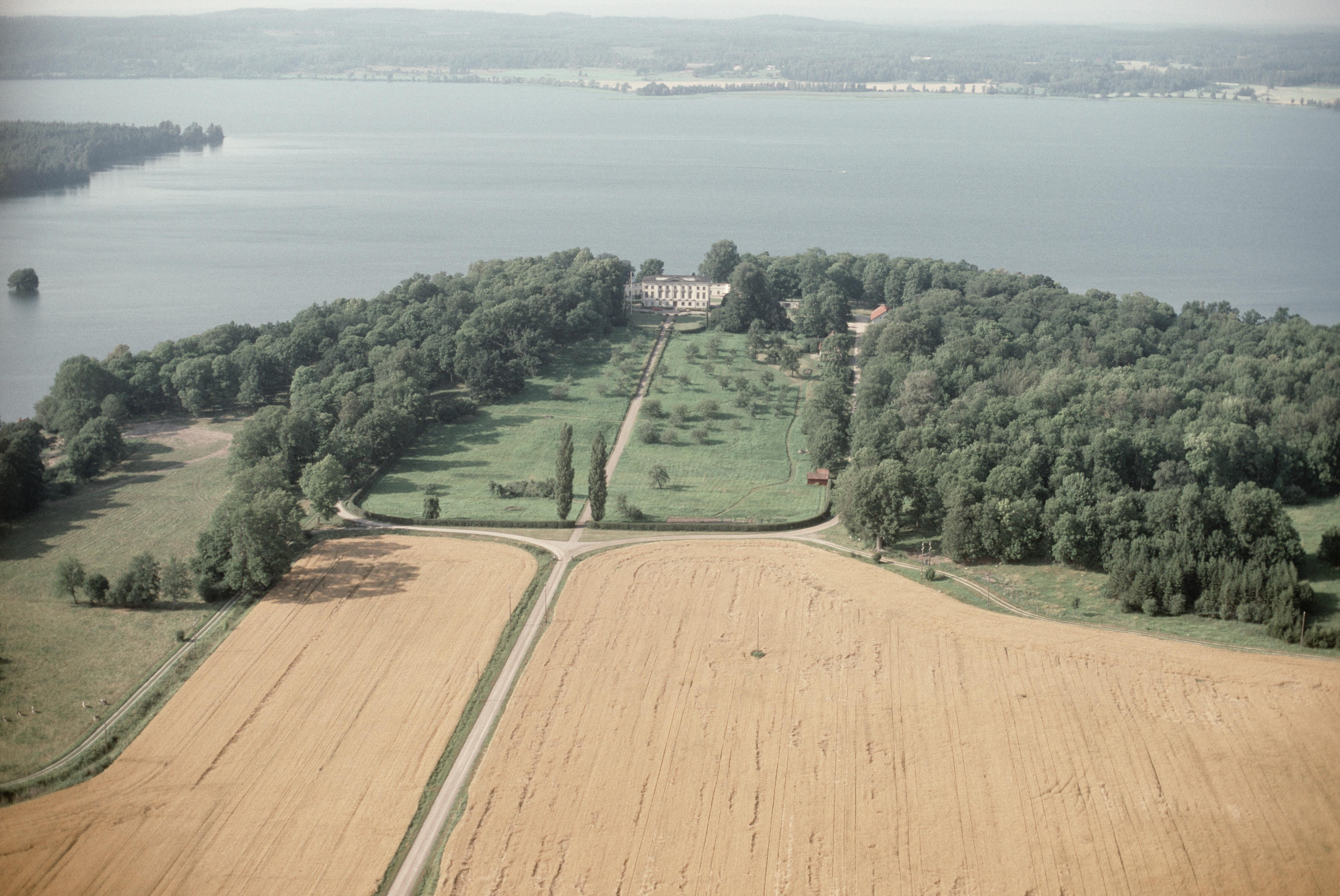 Beskrivning: Ulfåsa herrgård (skrivs även Ulvåsa herrgård) vid sjön Boren. Uppe till vänster Birgittas udde med lämningar efter den Heliga Birgittas fasta hus RAÄnr Ekebyborna 29:1. I bildens övre del socknet Kristberg. Bilden är tagen mot (väderstreck): NV