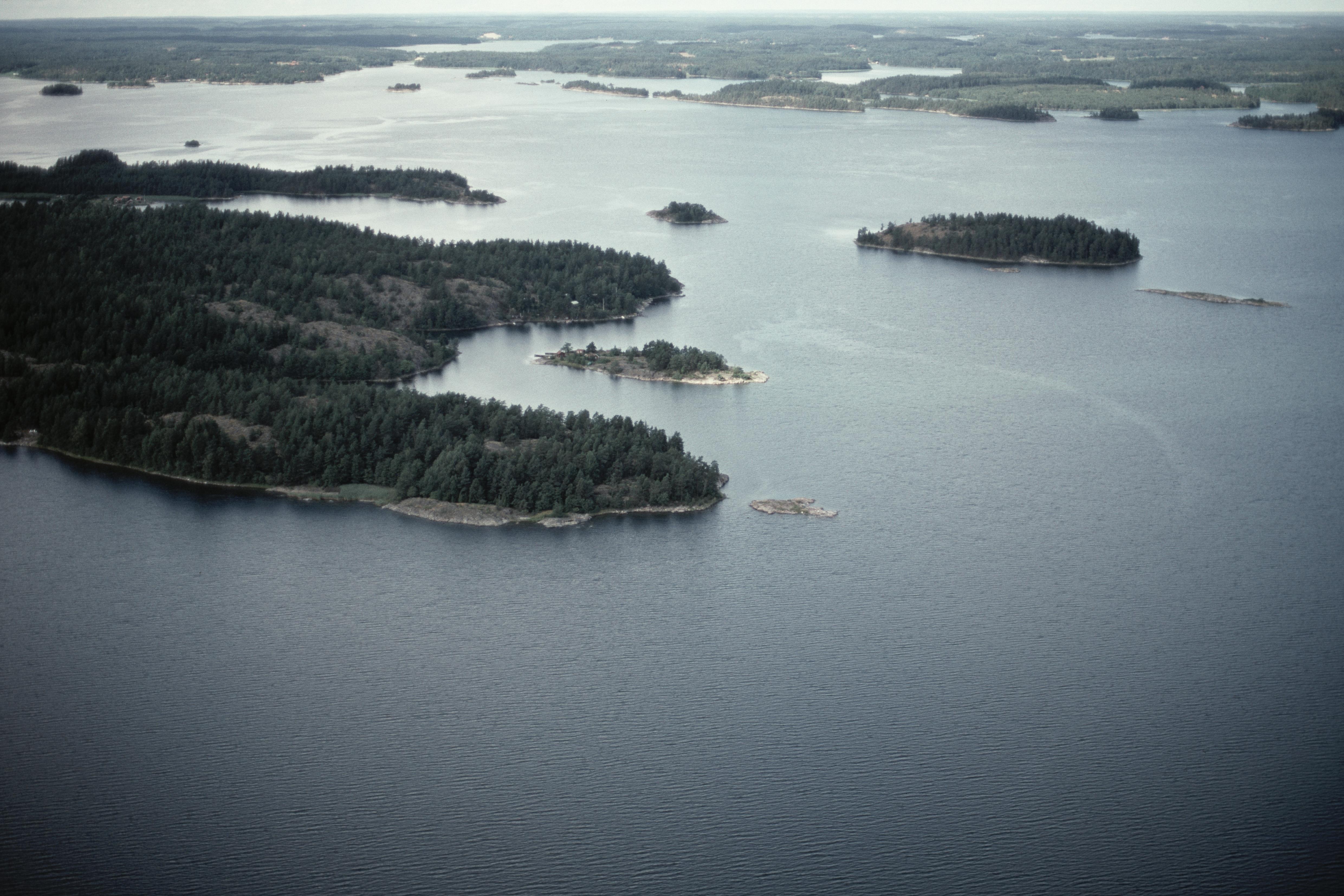 Beskrivning: Gryts skärgård. Ängelholms naturreservat. Vid bildens mitt Dalaudden med röse RAÄnr Gryt 9:1-2. Stora Gåsön uppe till höger. Bilden är tagen mot (väderstreck): NNV