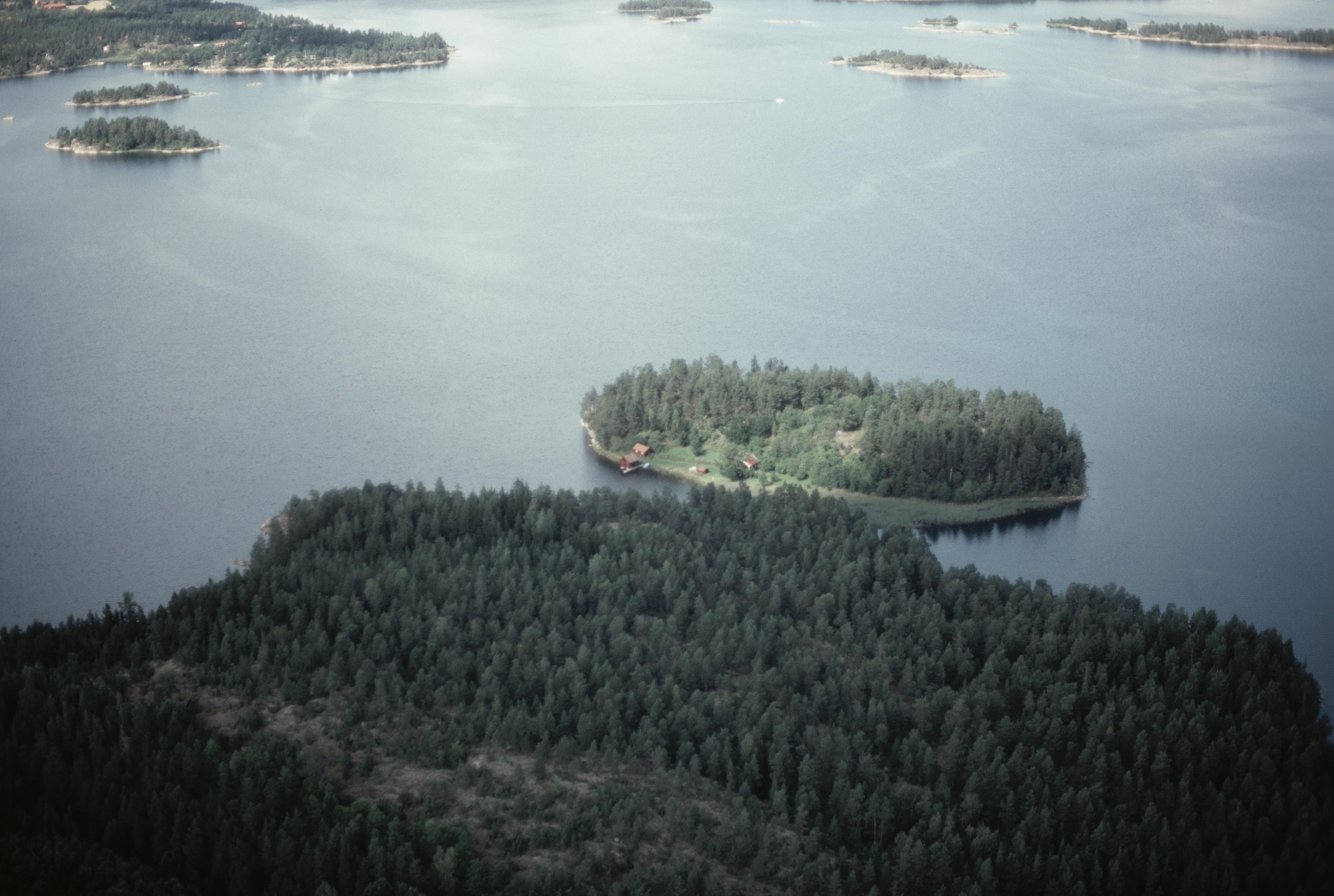 Beskrivning: Gryts skärgård. Havsviken Orren. Karholmen vid bildens mitt. I bildens nedre del Kalkudden och Ängtorpemossen. Bilden är tagen mot (väderstreck): NNV
