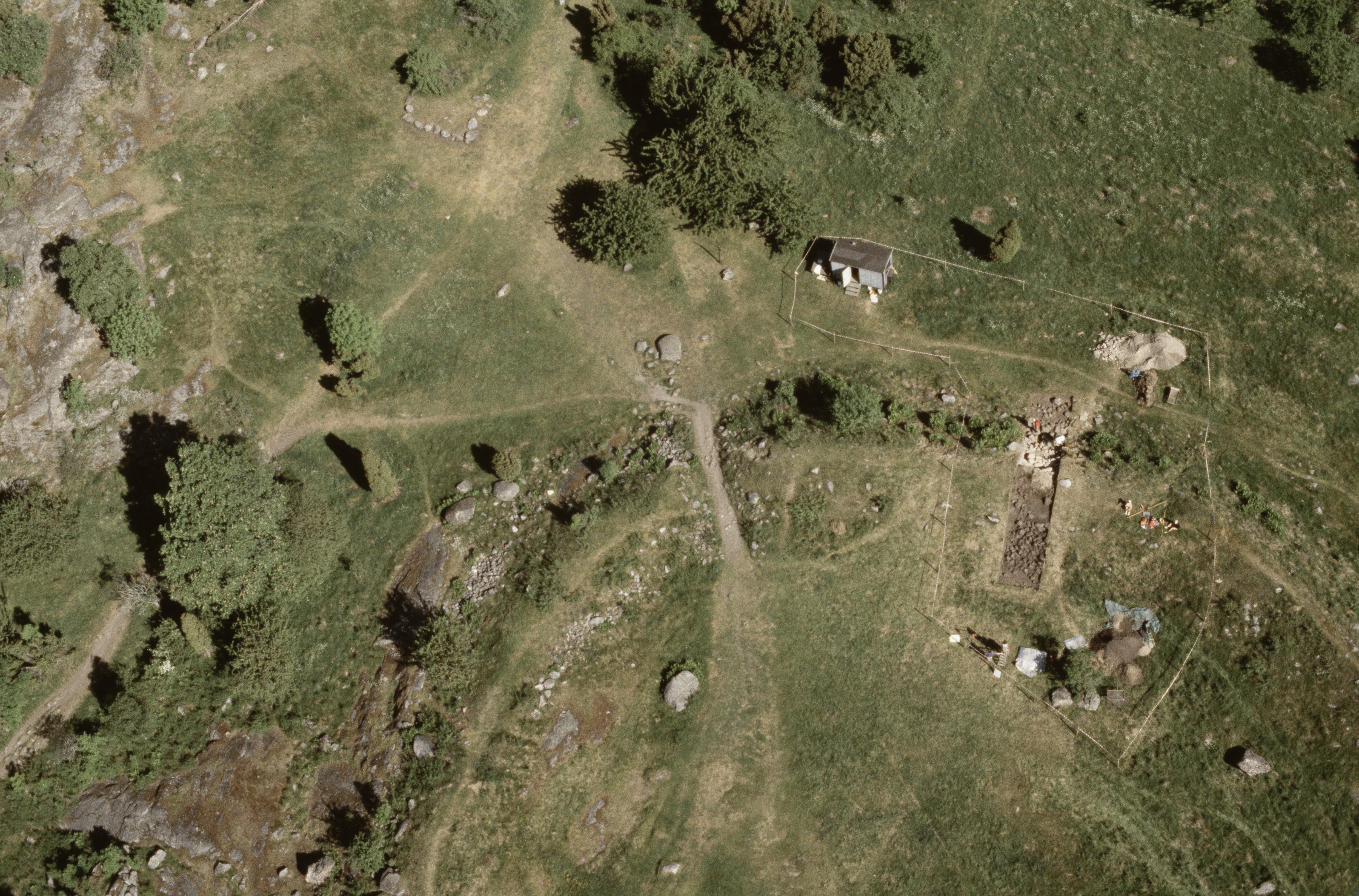 Beskrivning: Fornlämningsområdet Birka på Björkö i Mälaren.Arkeologisk undersökning i vallen till fornborg Borg RAÄnr Adelsö 34:1. Bilden är tagen mot (väderstreck): NNV